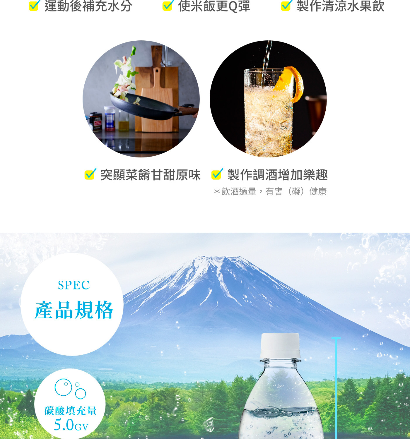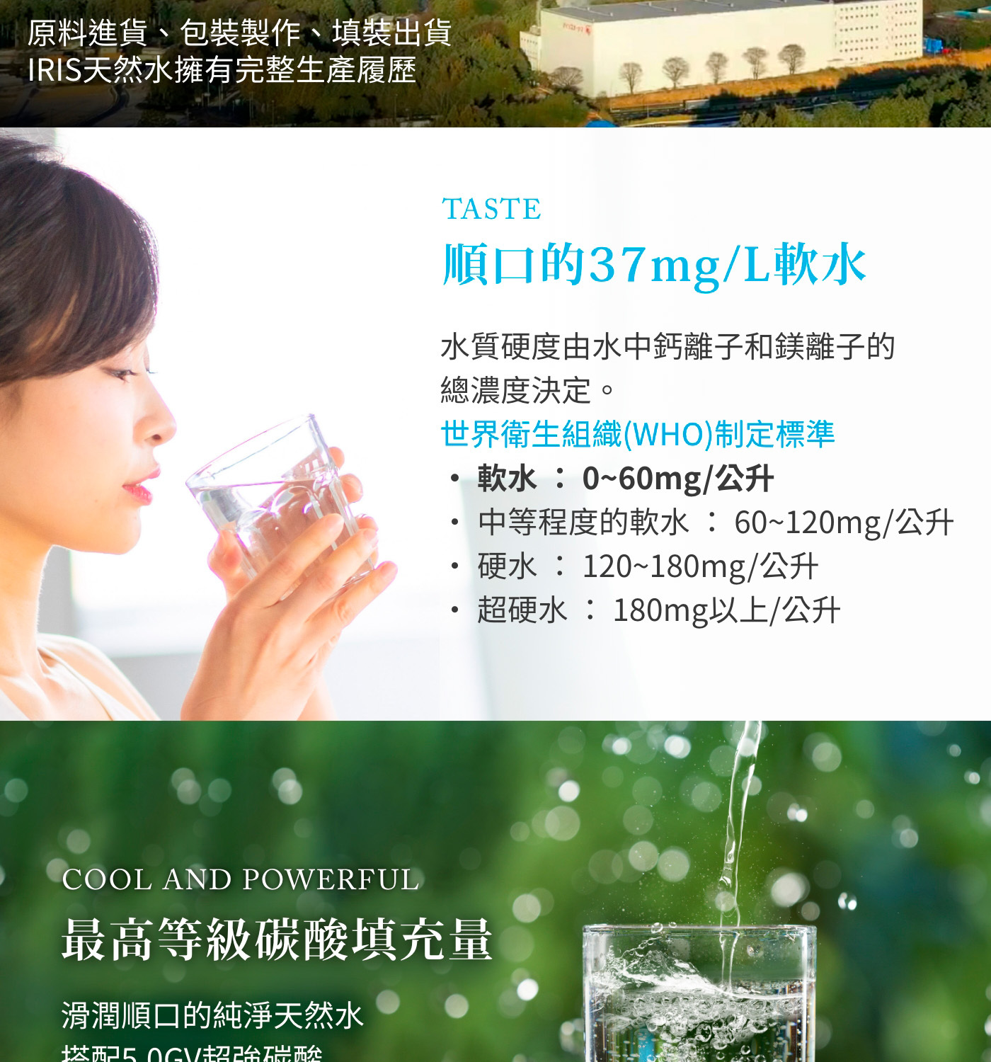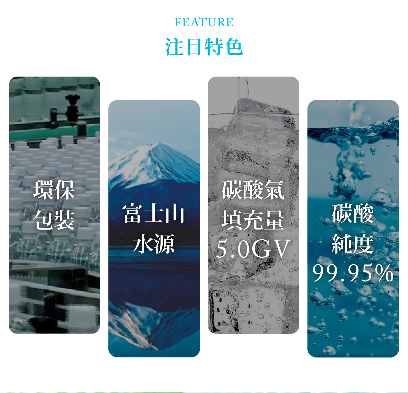 • 氣泡強勁、飽滿柔滑、持續時間⾧,無碳酸特殊酸味