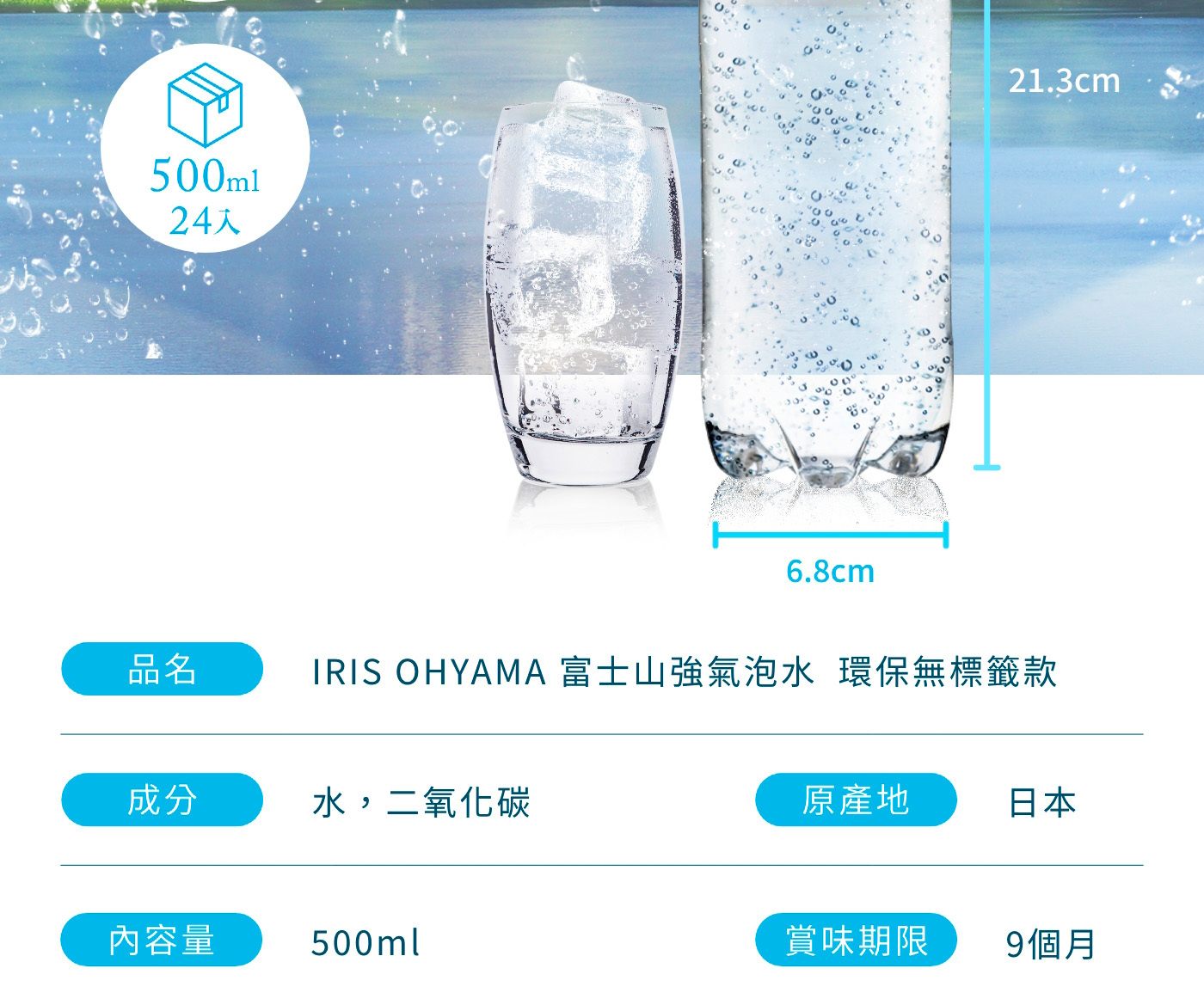 富士山強氣泡水 500ml X 24入 環保無標籤款