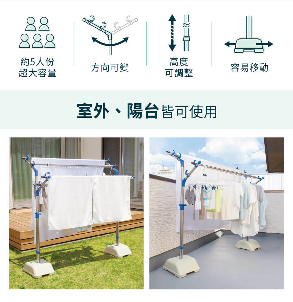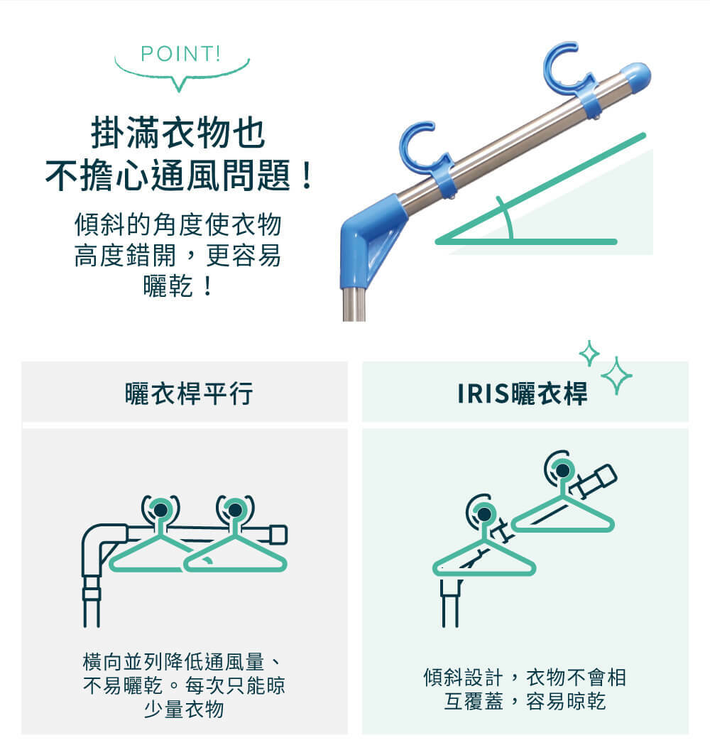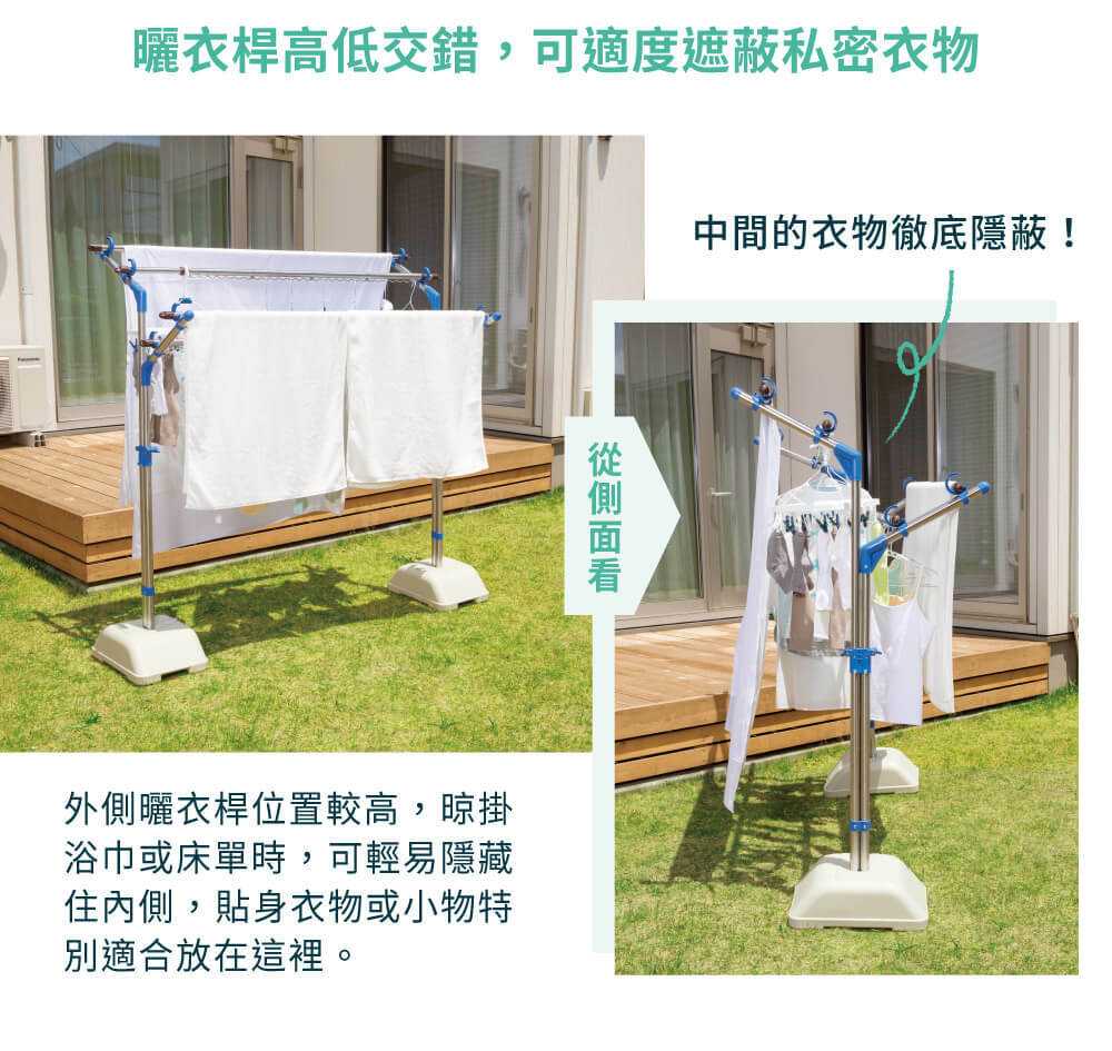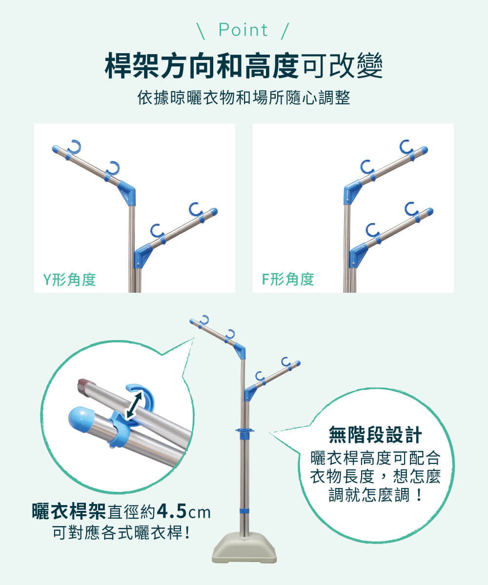 • 除了伸縮調整高度,Y字型突出桿也可隨心變換掛曬方向。