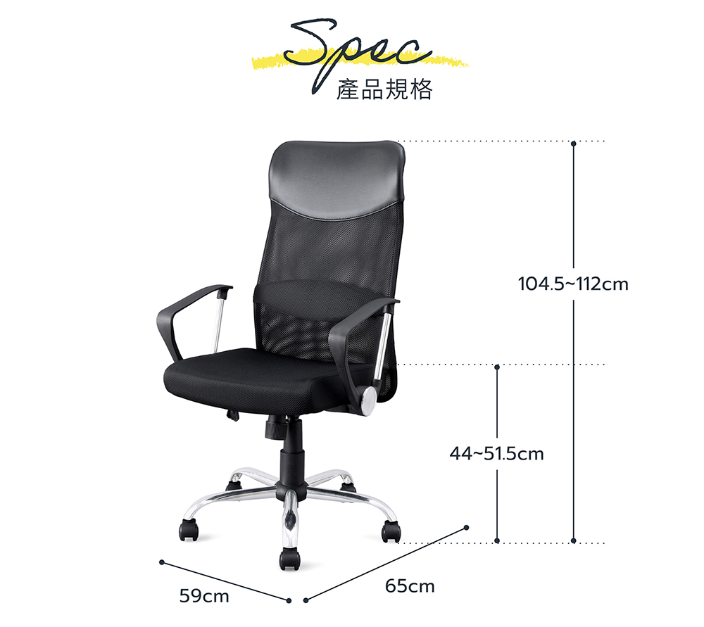 • 椅墊使用透氣性良好的網布材質,長時間使用也不悶熱