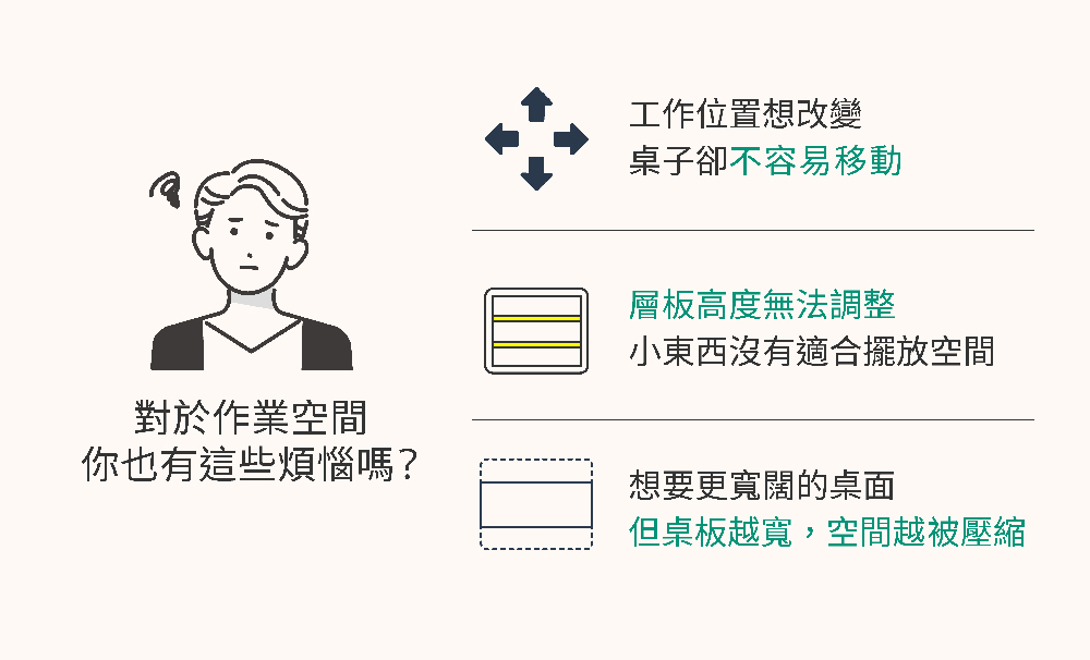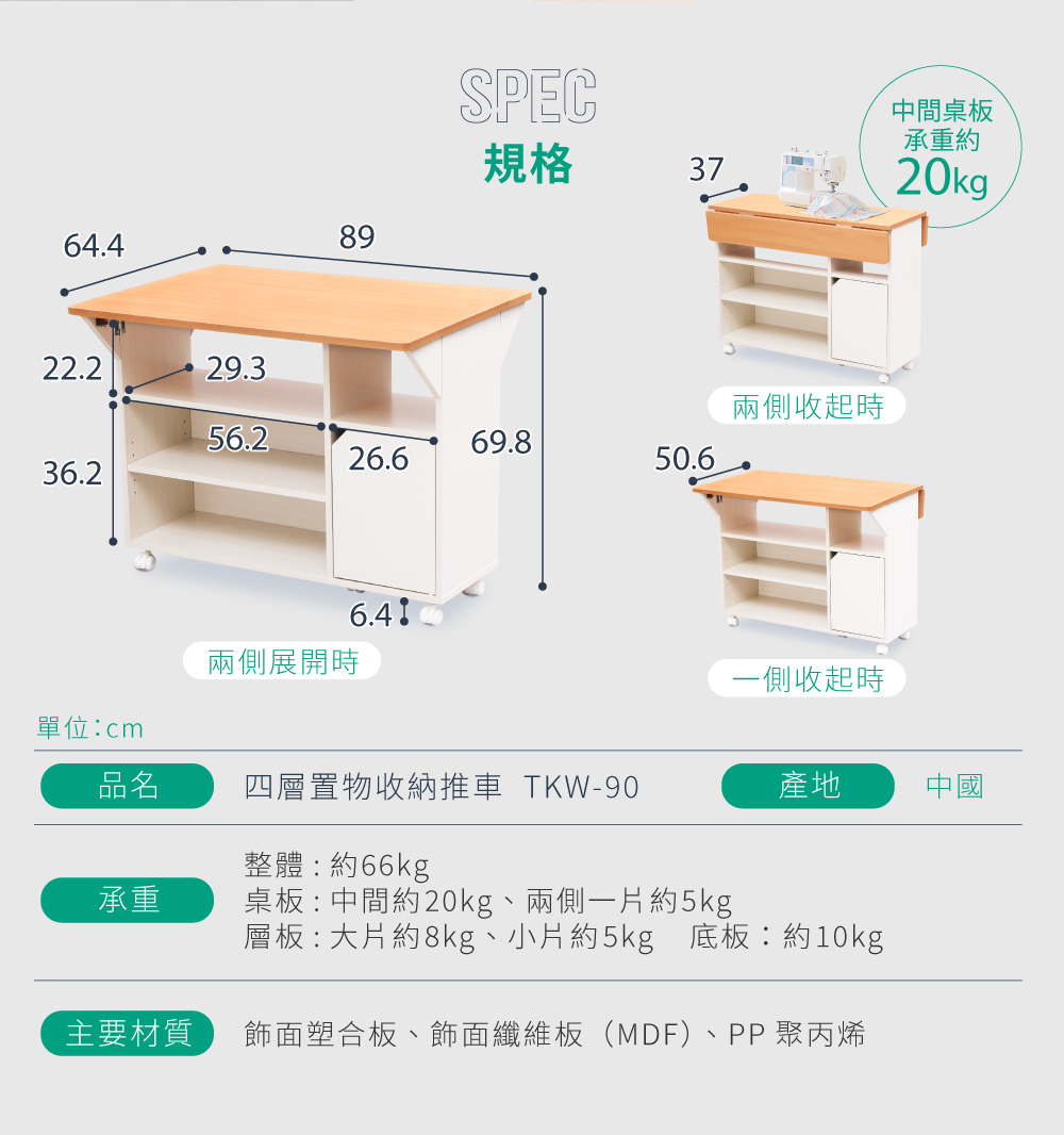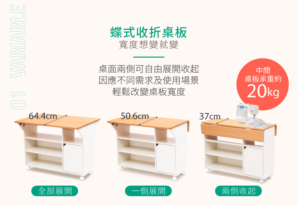 • 桌板3種變化,依需求改變寬度,實用性更高