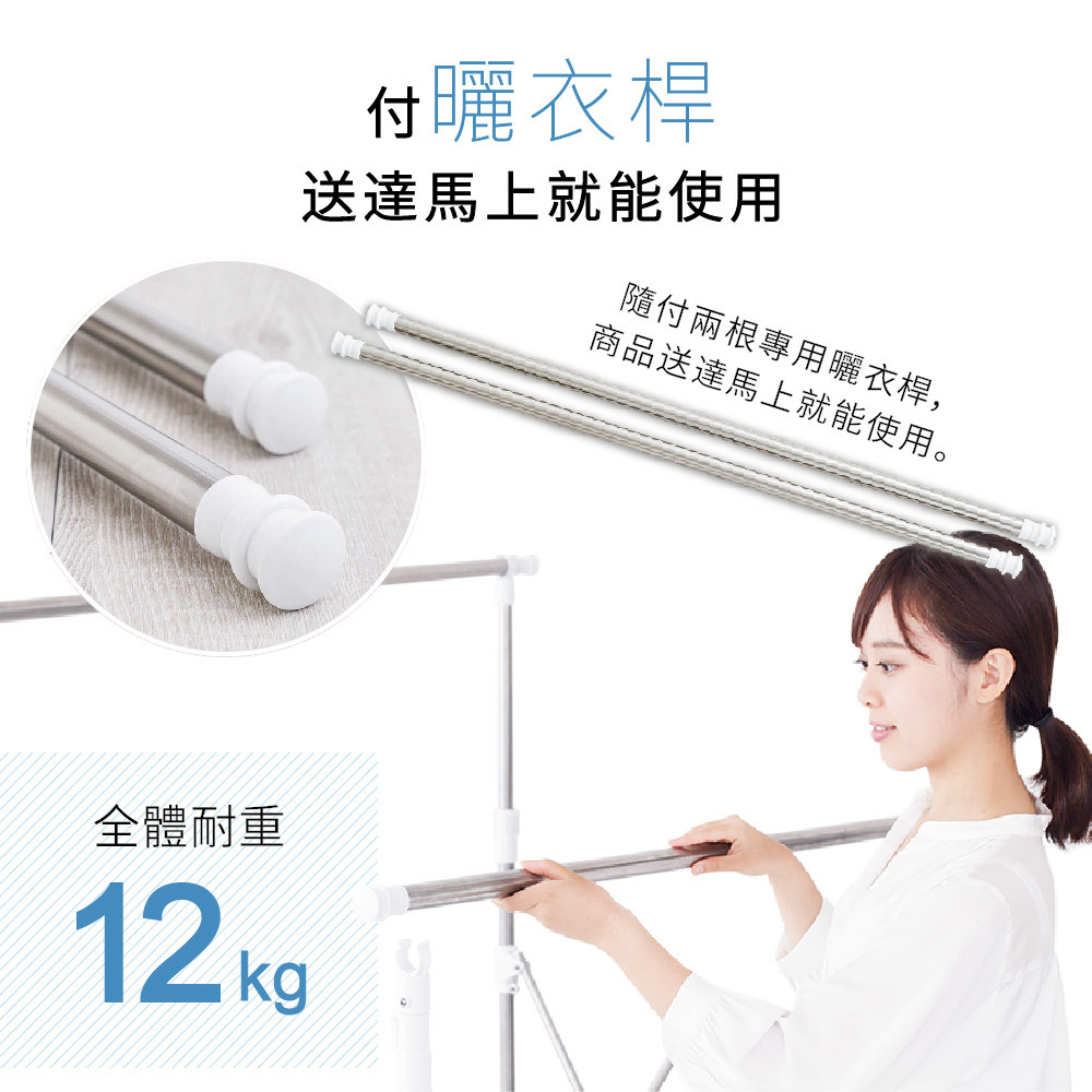 商品耐重(約):全體12kg、每隻曬衣桿4kg、每隻伸縮桿1kg