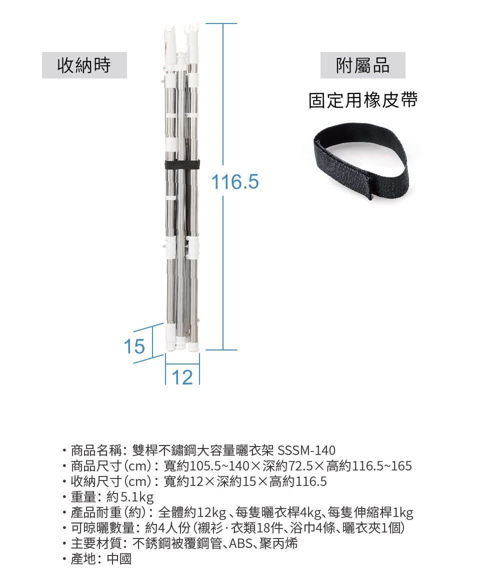 商品名稱:雙桿不鏽鋼大容量曬衣架 SSSM-140
