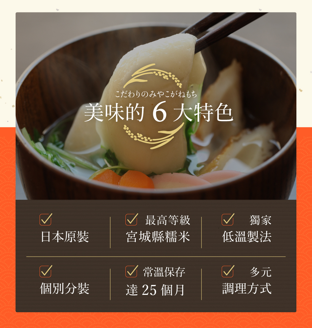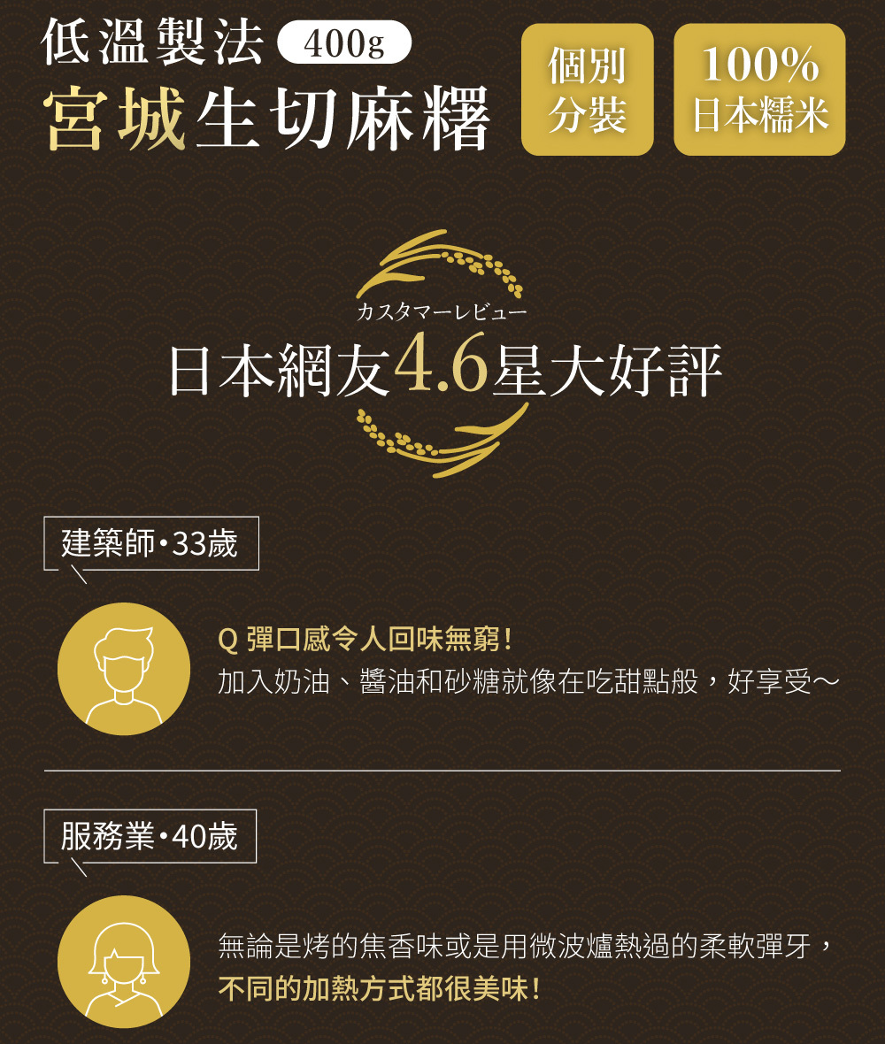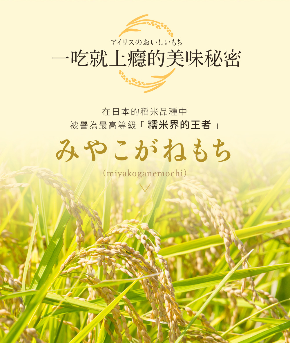 •嚴選日本宮崎縣產糯米みやこがね及採用「低溫製法」製作而成的好吃麻糬