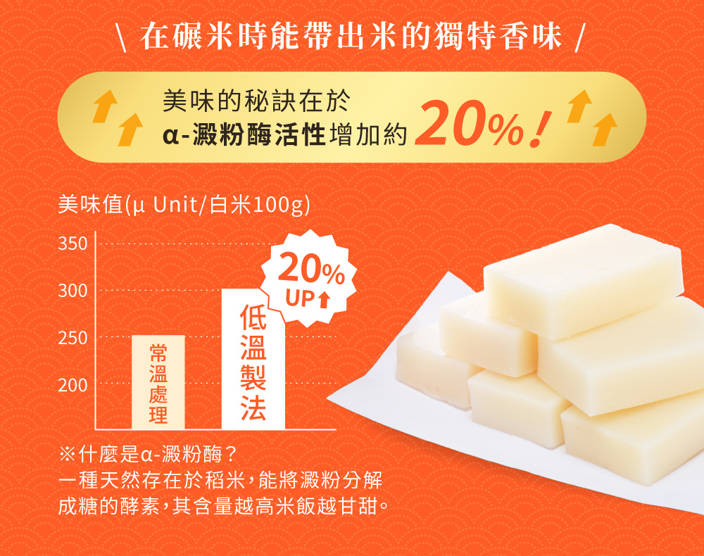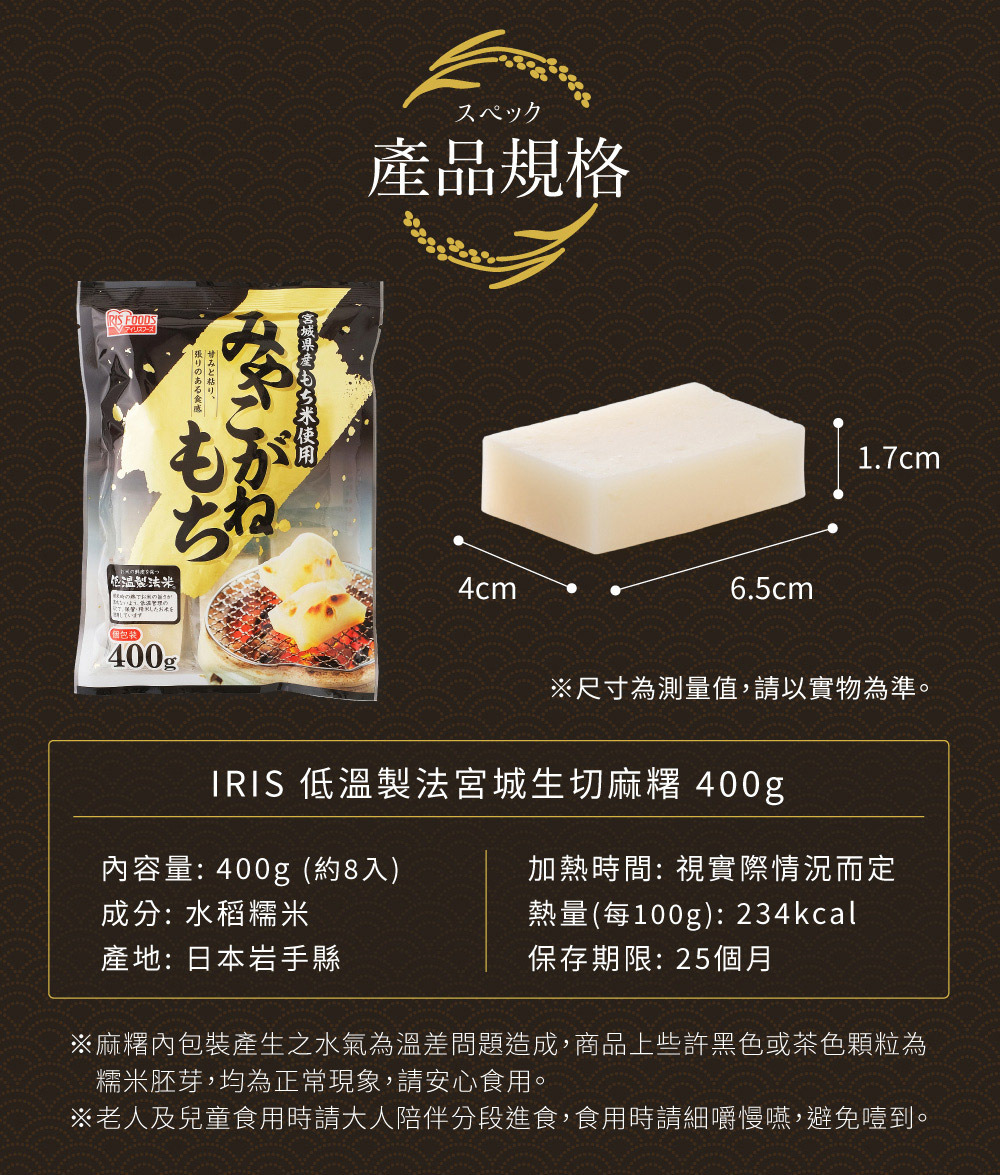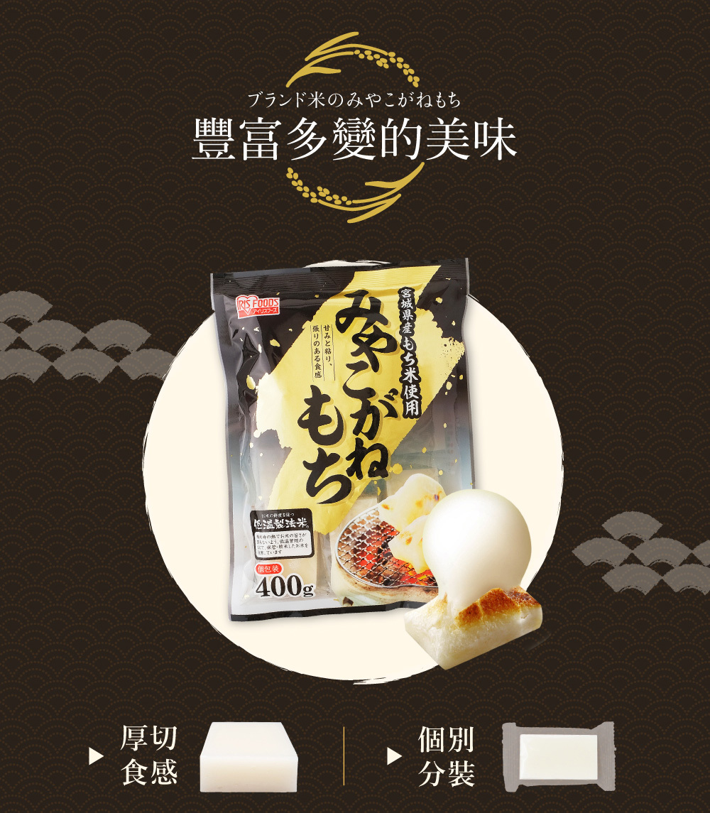 •嚴選日本宮崎縣產糯米みやこがね及採用「低溫製法」製作而成的好吃麻糬