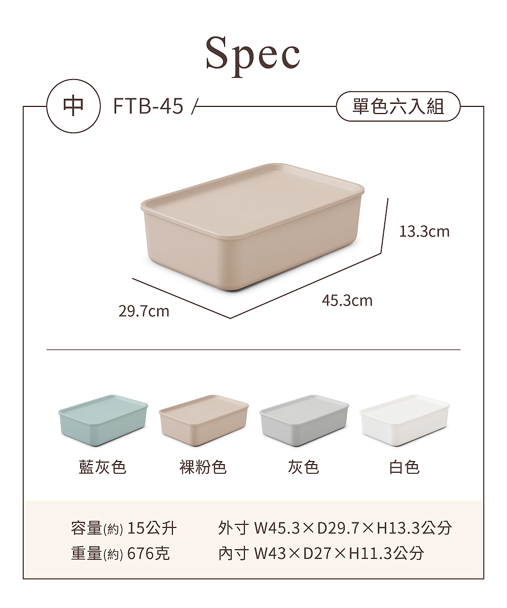 可堆疊附蓋收納盒6入組 15L FTB-45