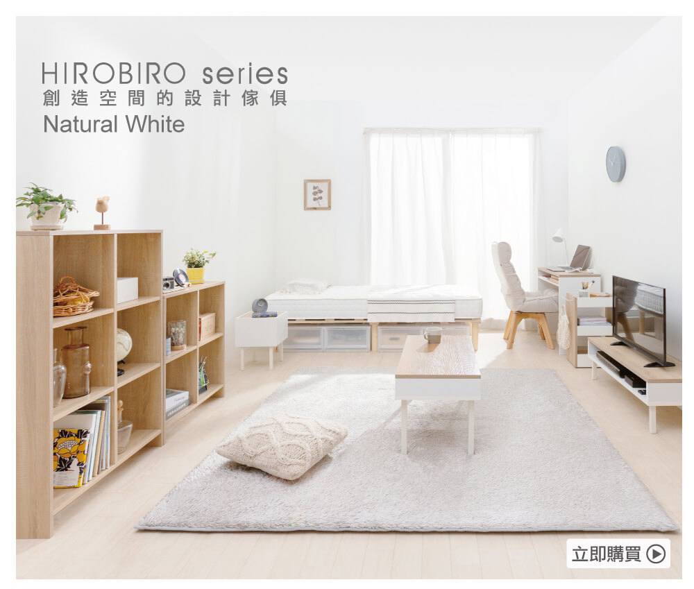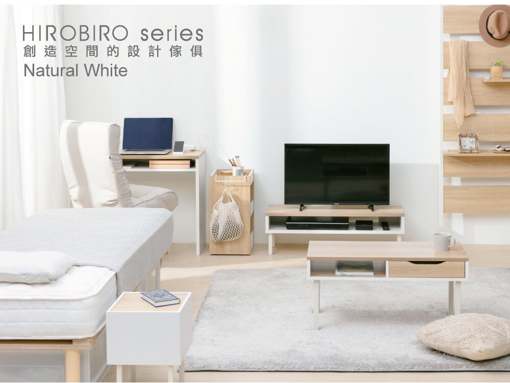 HIROBIRO的WHITE系列採用明亮的舒適感為主旨,以木紋與純白做為主要材質,為空間帶來明亮舒適的日系生活質感。 在木紋的舒適感覺下,搭配上純白所打造的舒適空間,不但在視覺上會讓空間看起來大一些,也可以減少不少視覺上的壓力