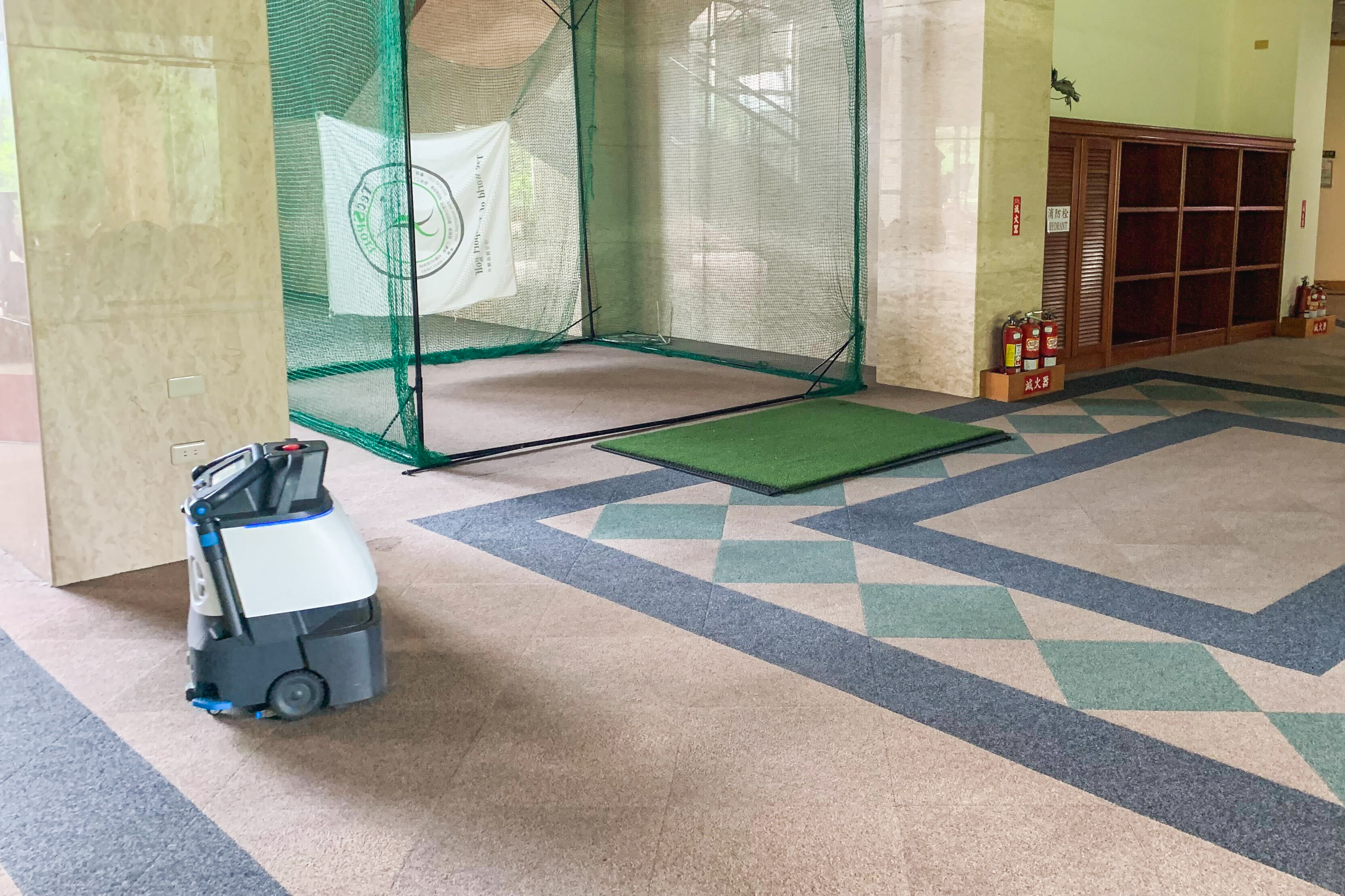 客人時常會將場上的砂土帶回館內,必須時常清潔,才能維持環境整潔。但有限的人力使我們很難做到經常性的全面清潔。Whiz i可以取代3到4個人的人力,而且有電就可以使用,操作跟維護也非常簡單,即使清潔人員休假,我們的櫃檯人員、警衛也能輕鬆操作。