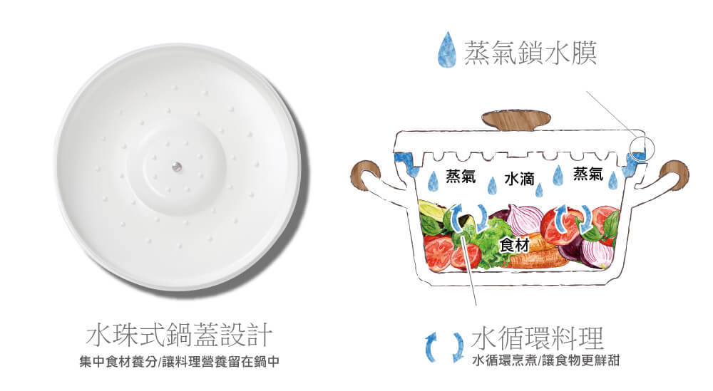 利用特殊的蒸氣水循環以及水珠式鍋蓋