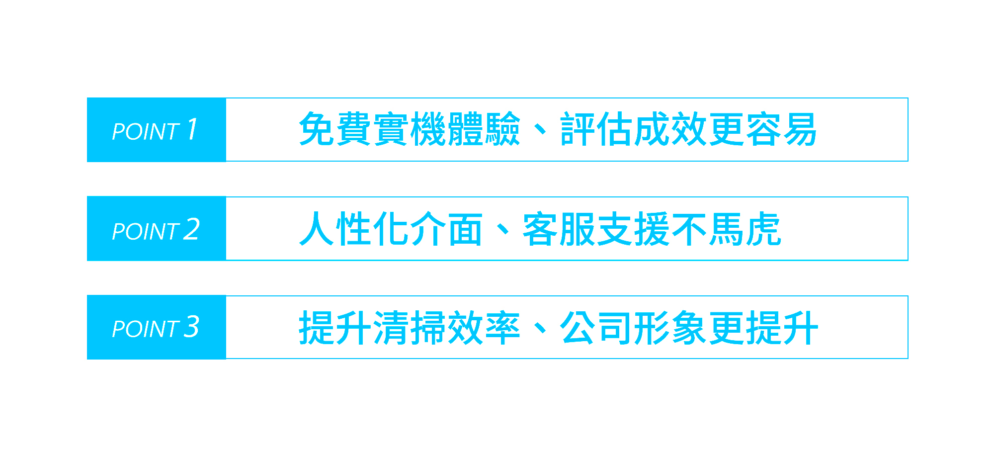 雖然此構想有可行性,卻沒有相關數據驗證成本效益,於是透過申請免費試用服務,實際體驗清掃機器人的效果。