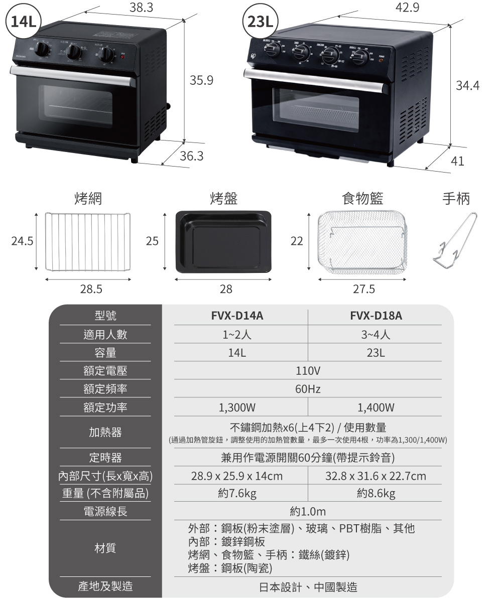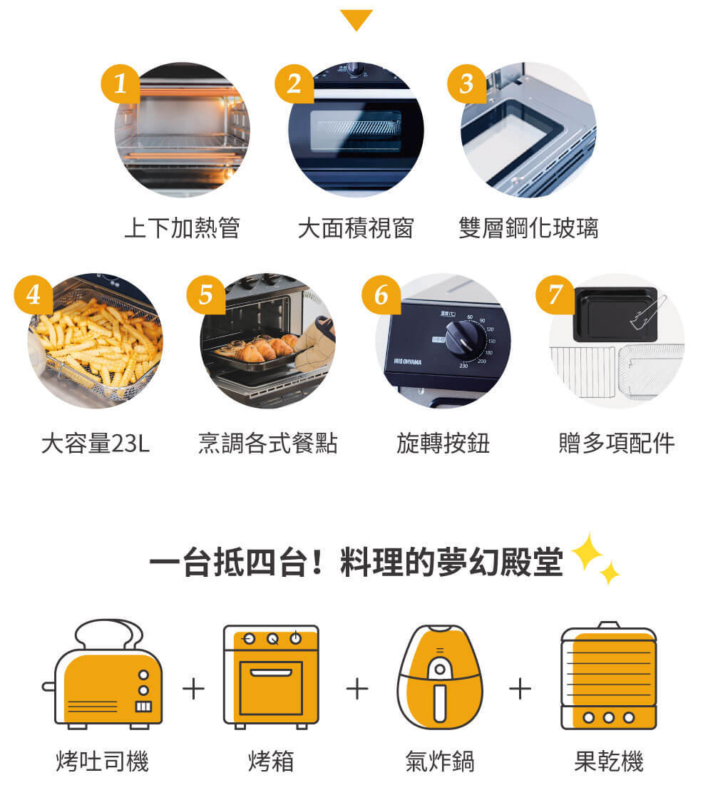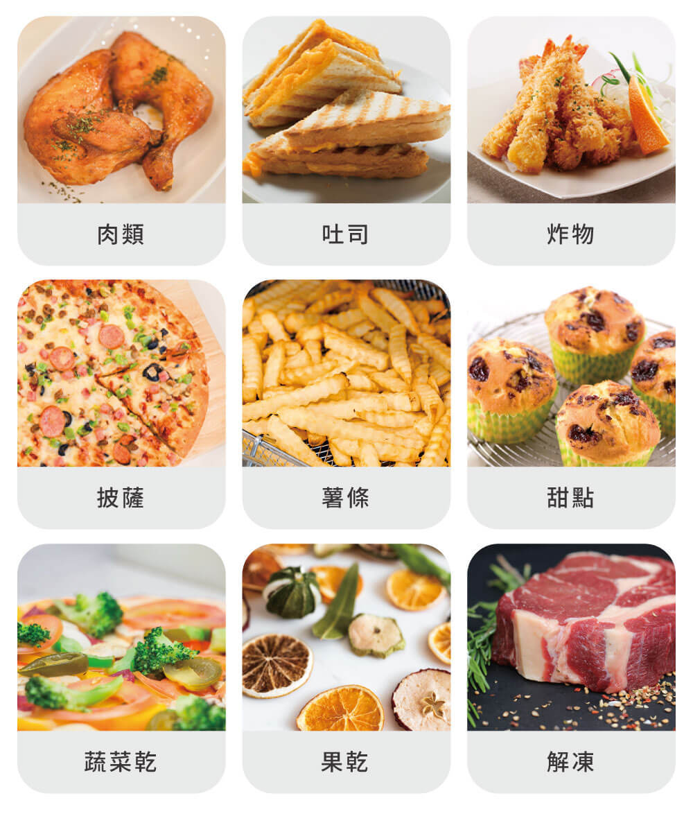 • 一台抵四台,吐司機+烤箱+氣炸鍋+果乾機