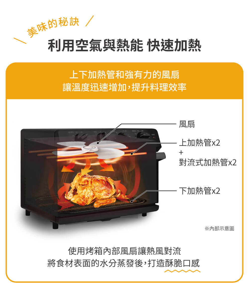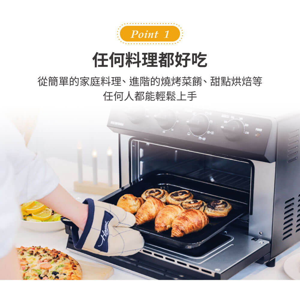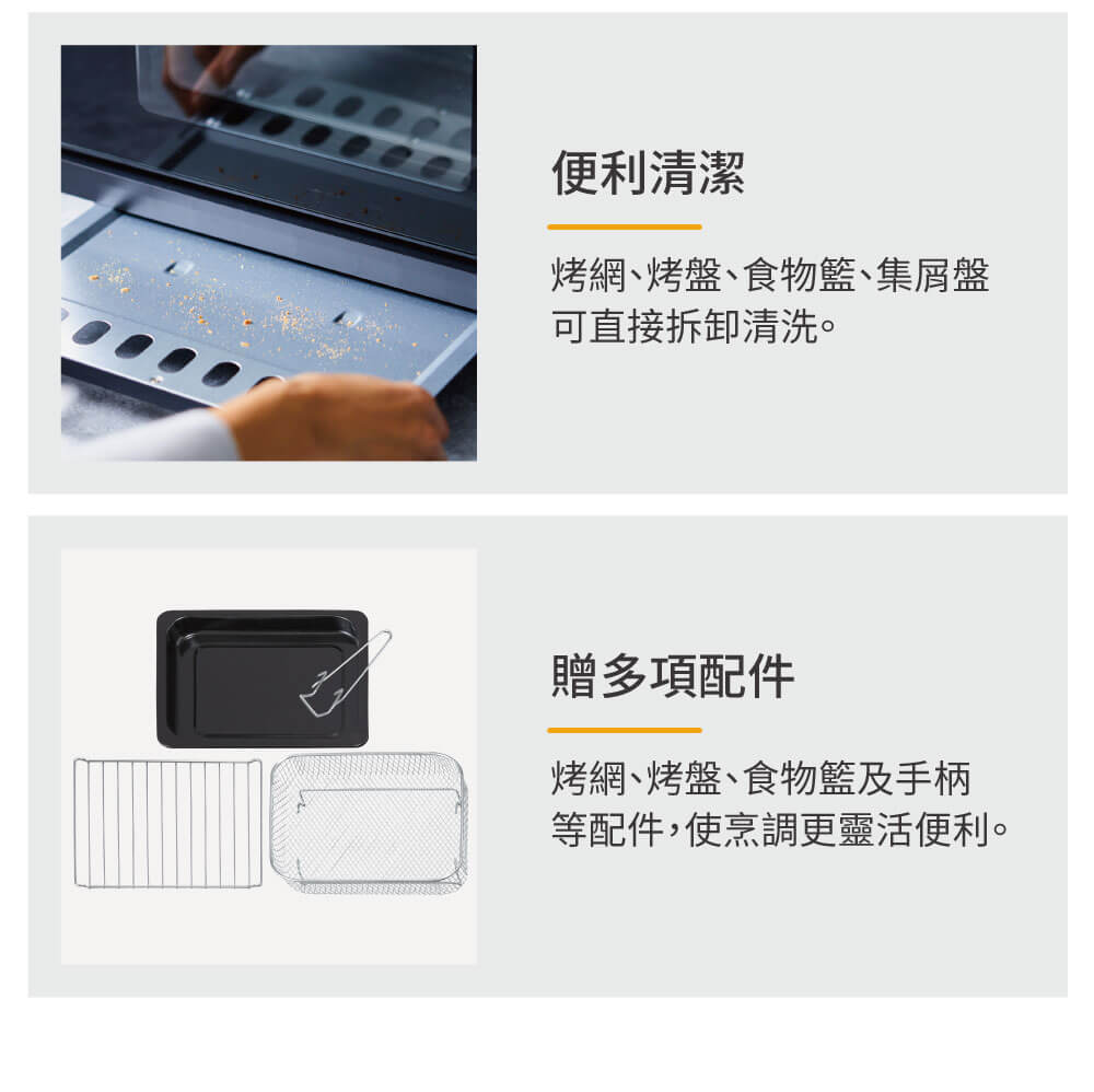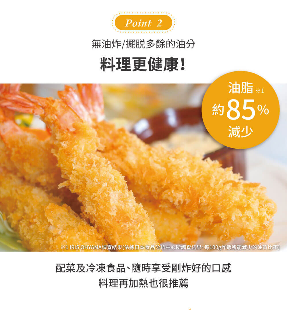 • 不需用油來油炸,料理仍然酥脆多汁美味
