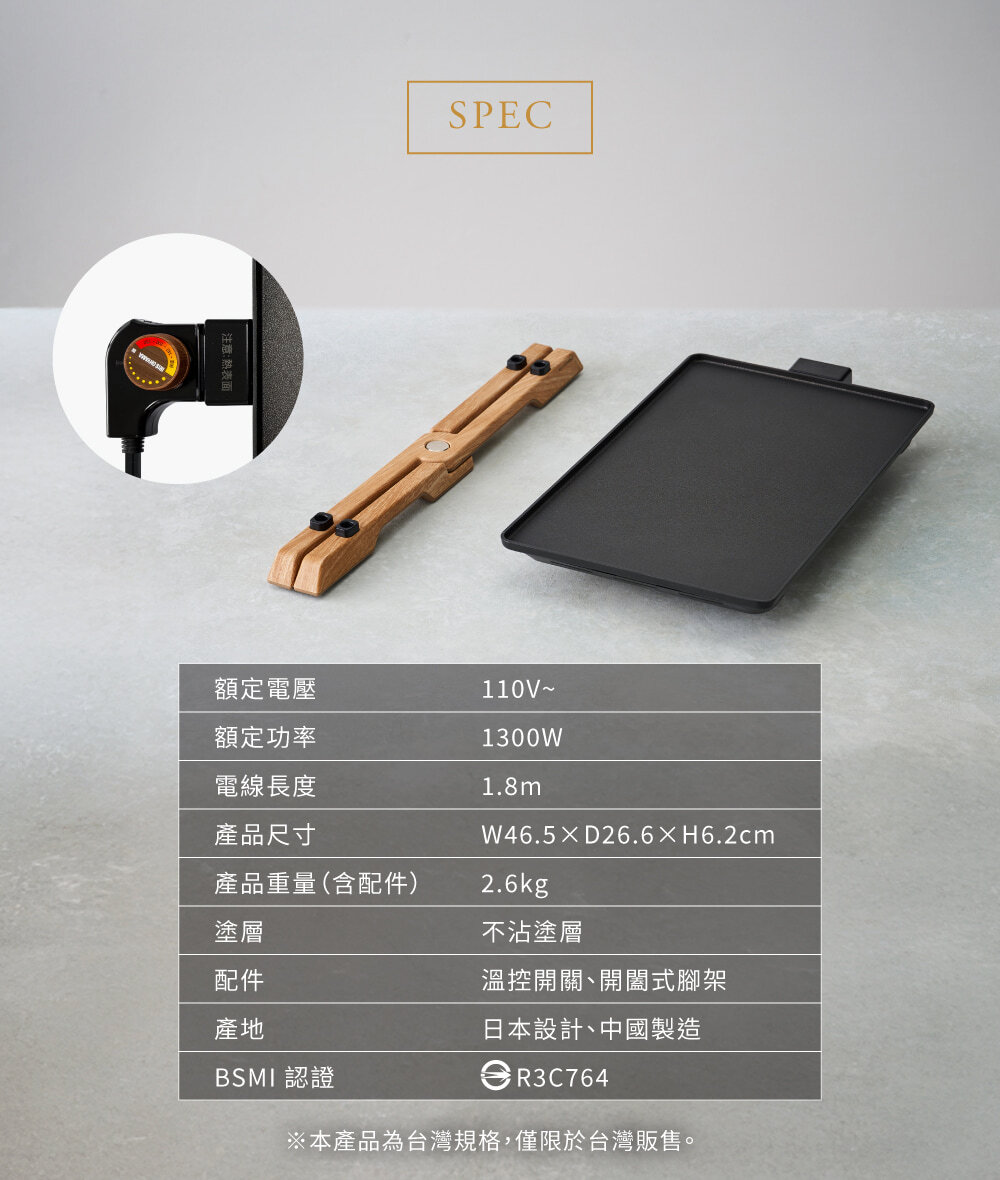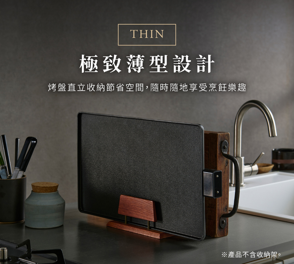 • 輕薄設計,烤盤、腳架可分開收納