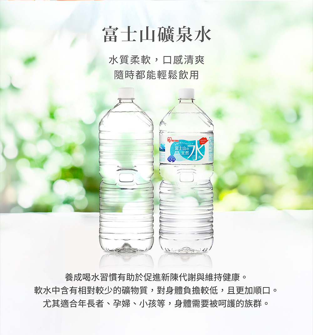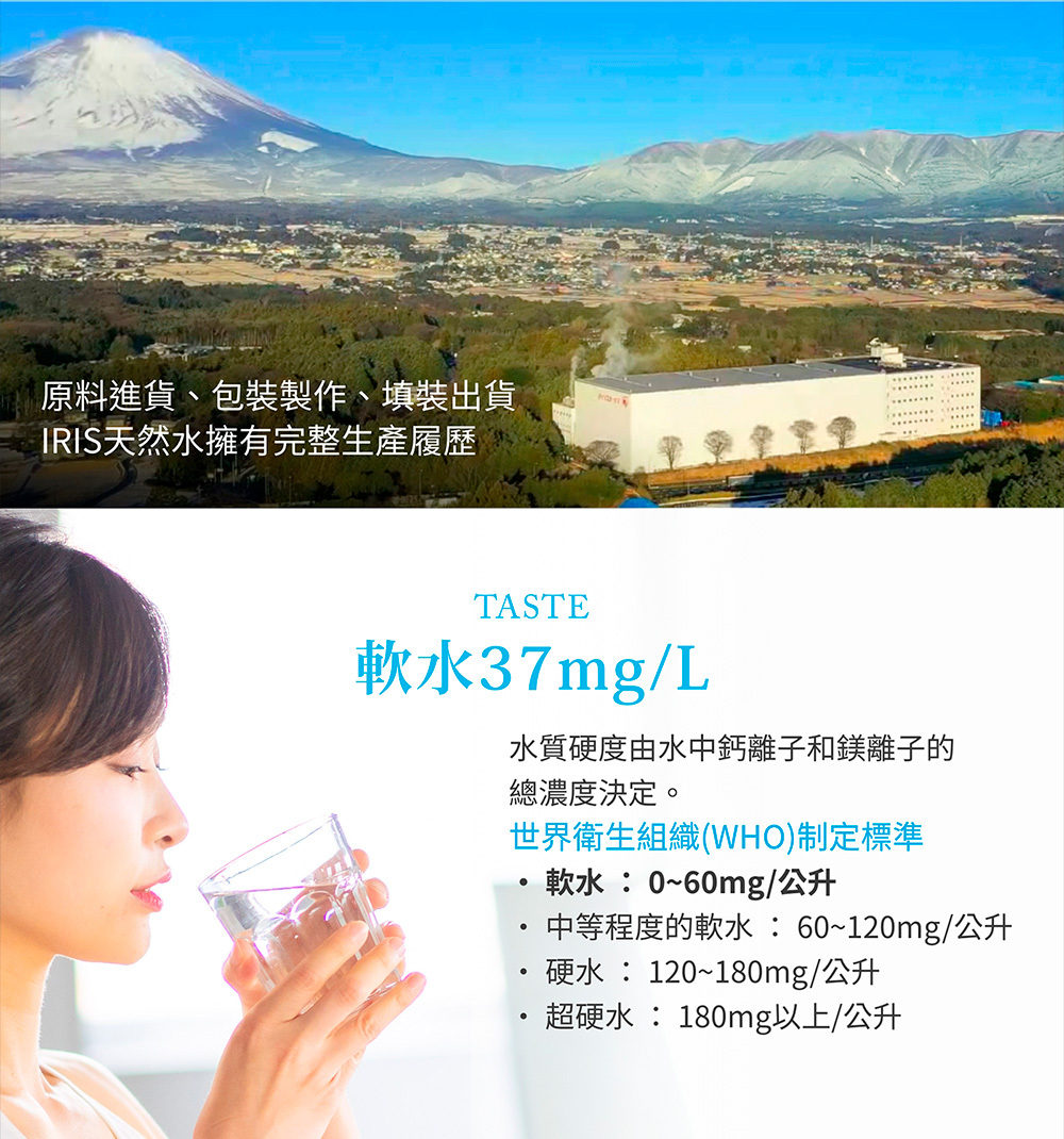 • 採用最低限度加工(過濾.殺菌)將泉水風味完整封存