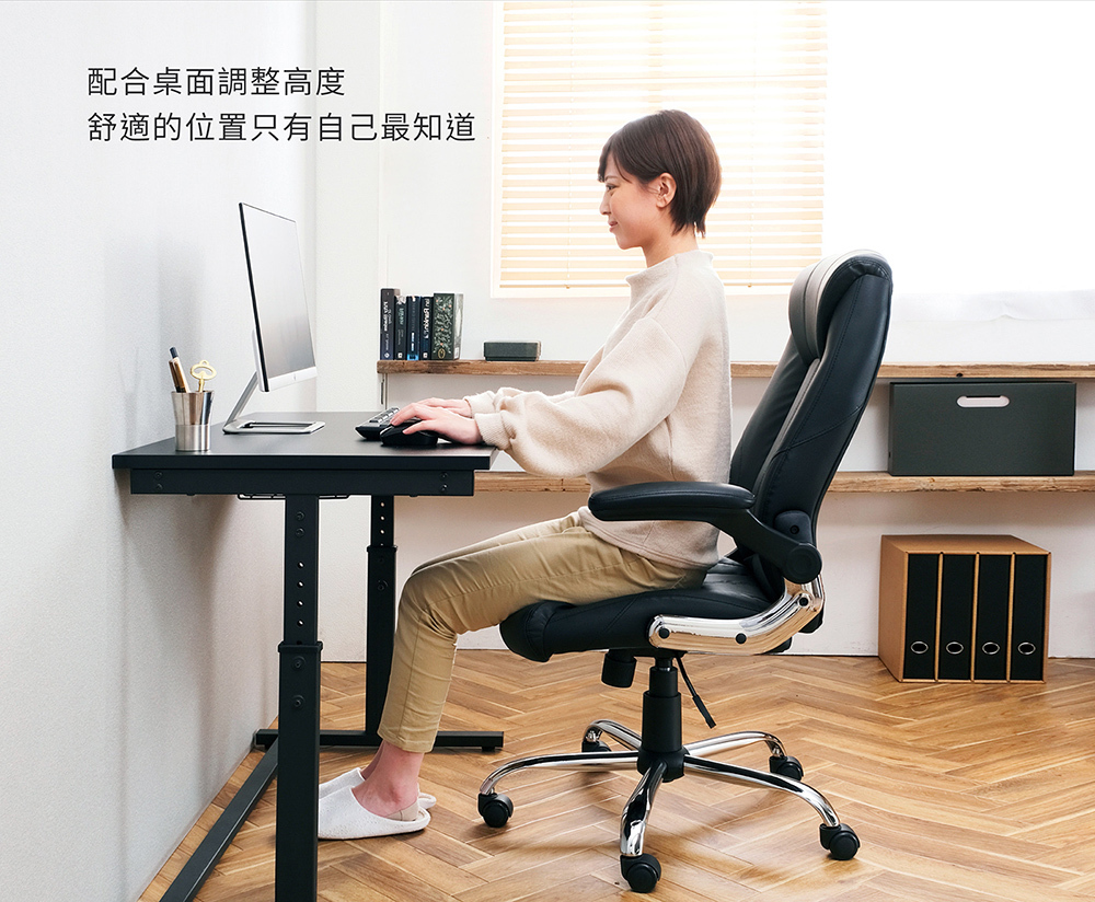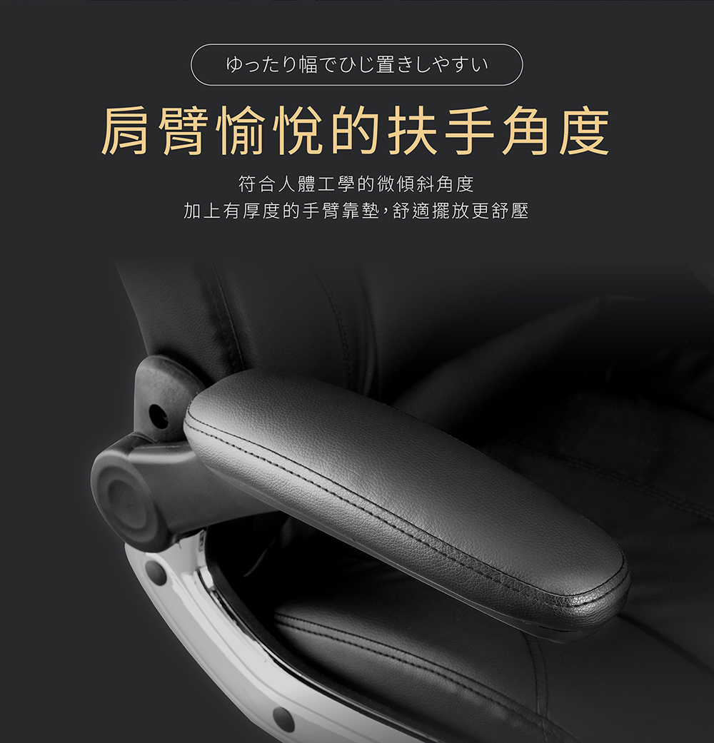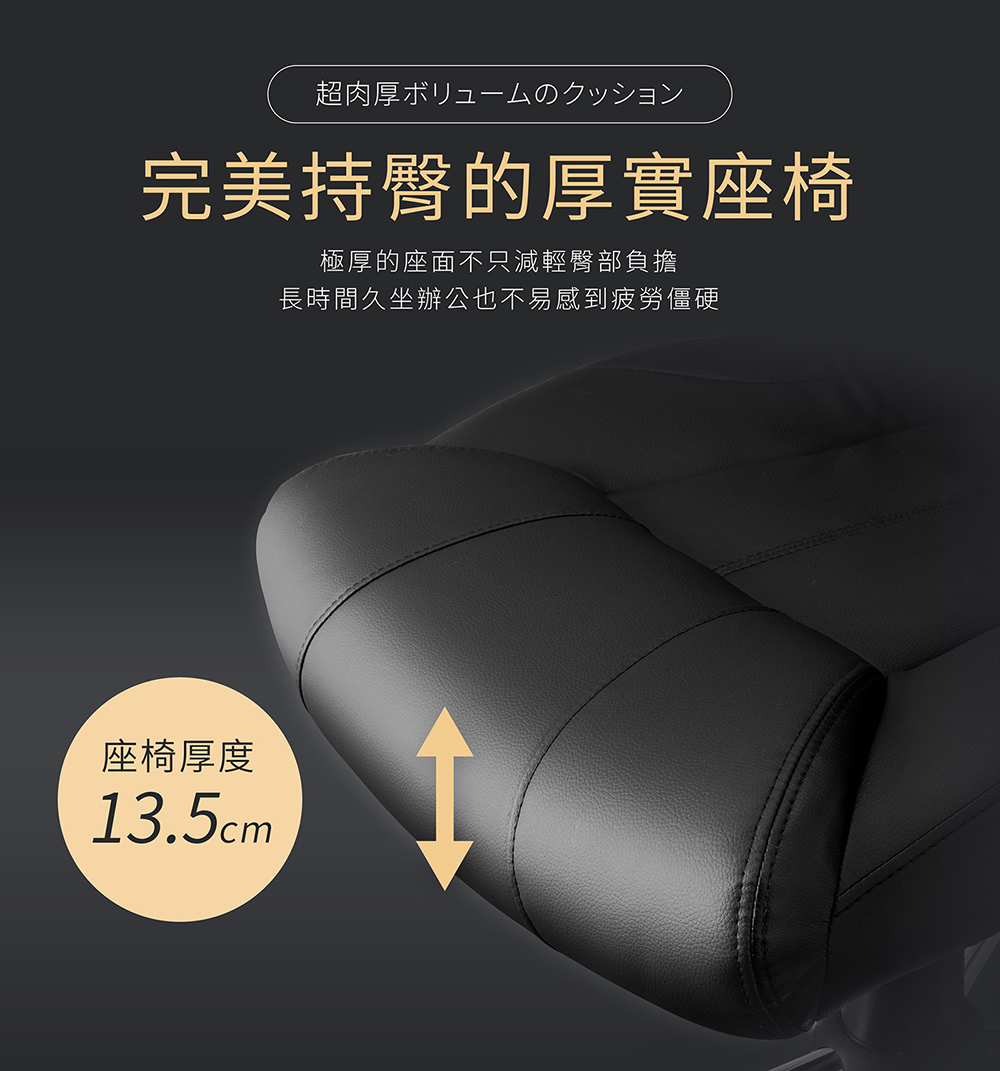 • 具有支撐度的坐墊,長時間坐著也不易感到疲累的皮革辦公椅