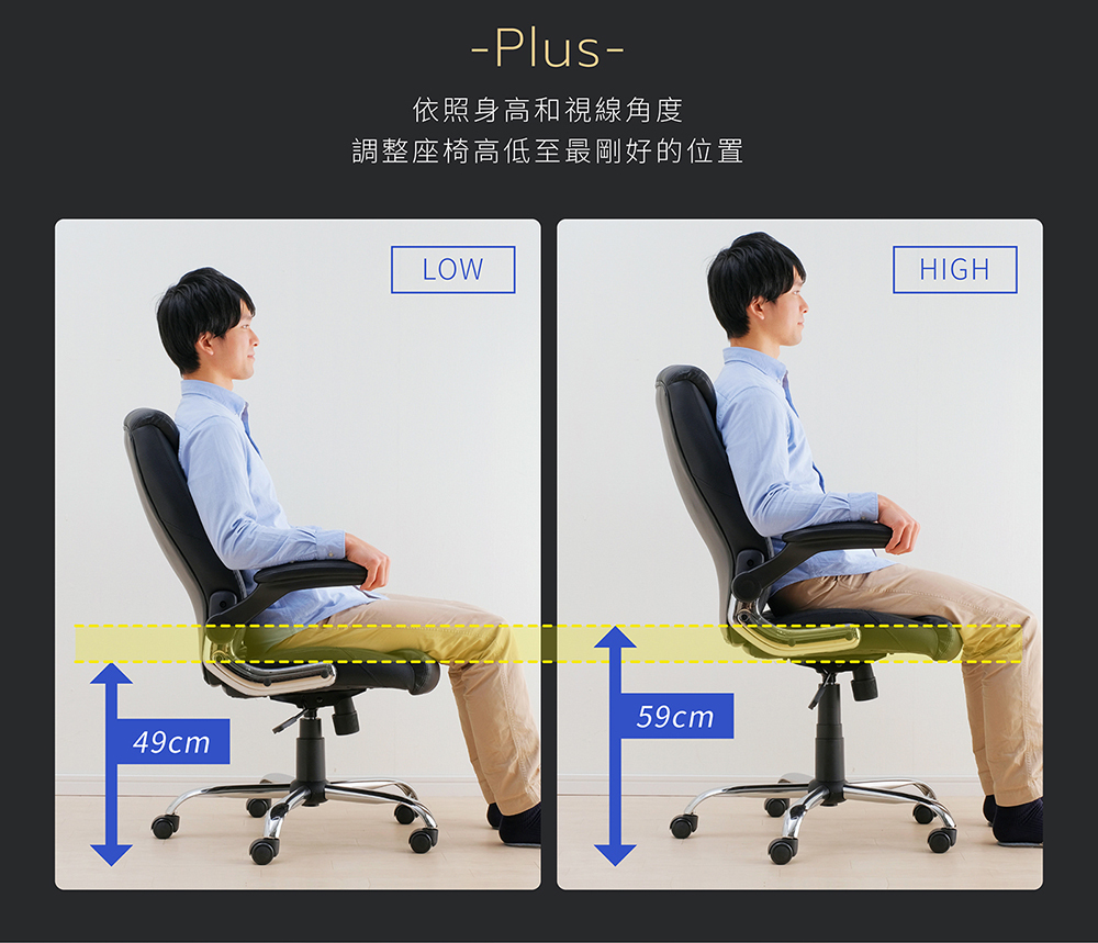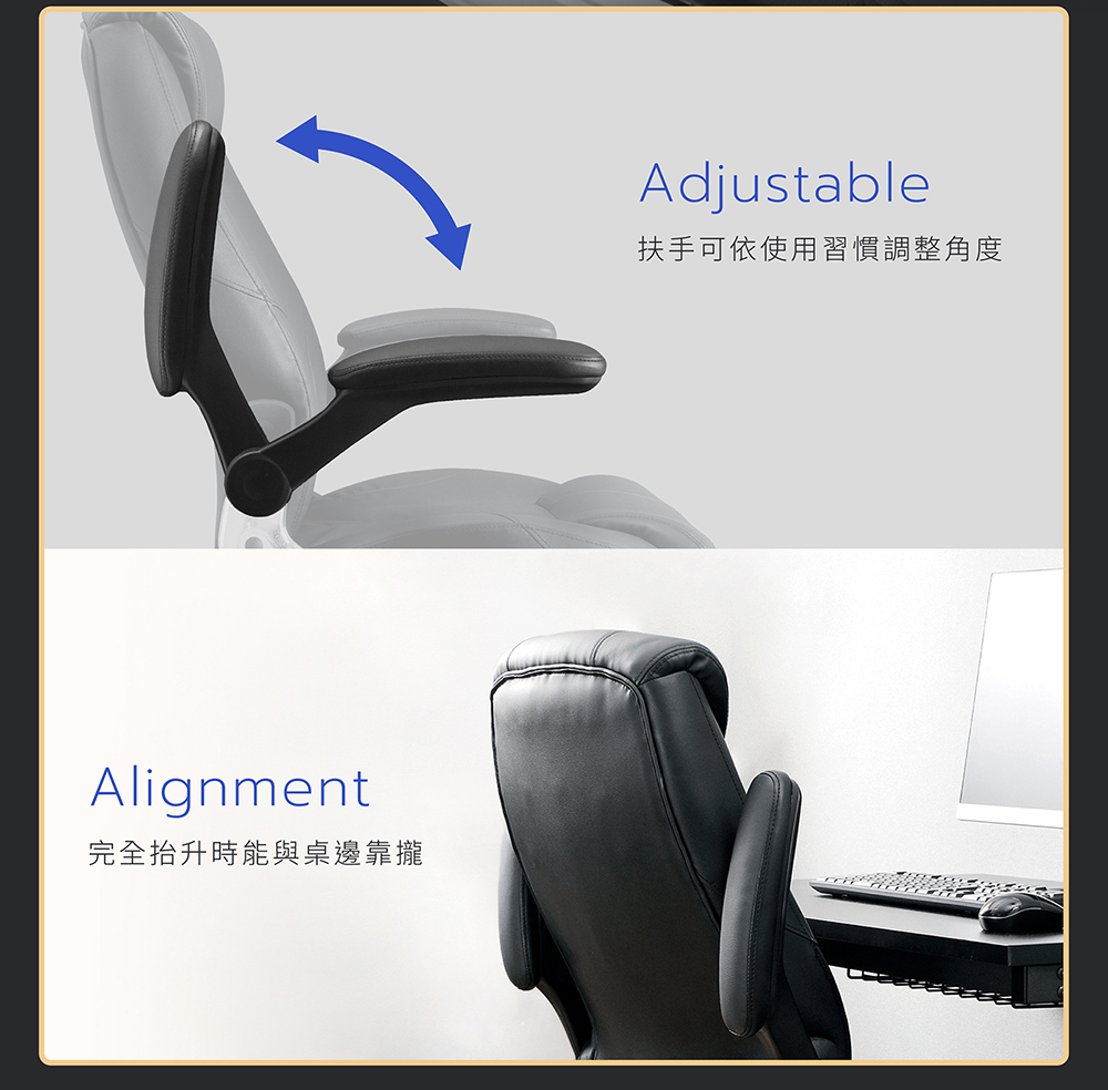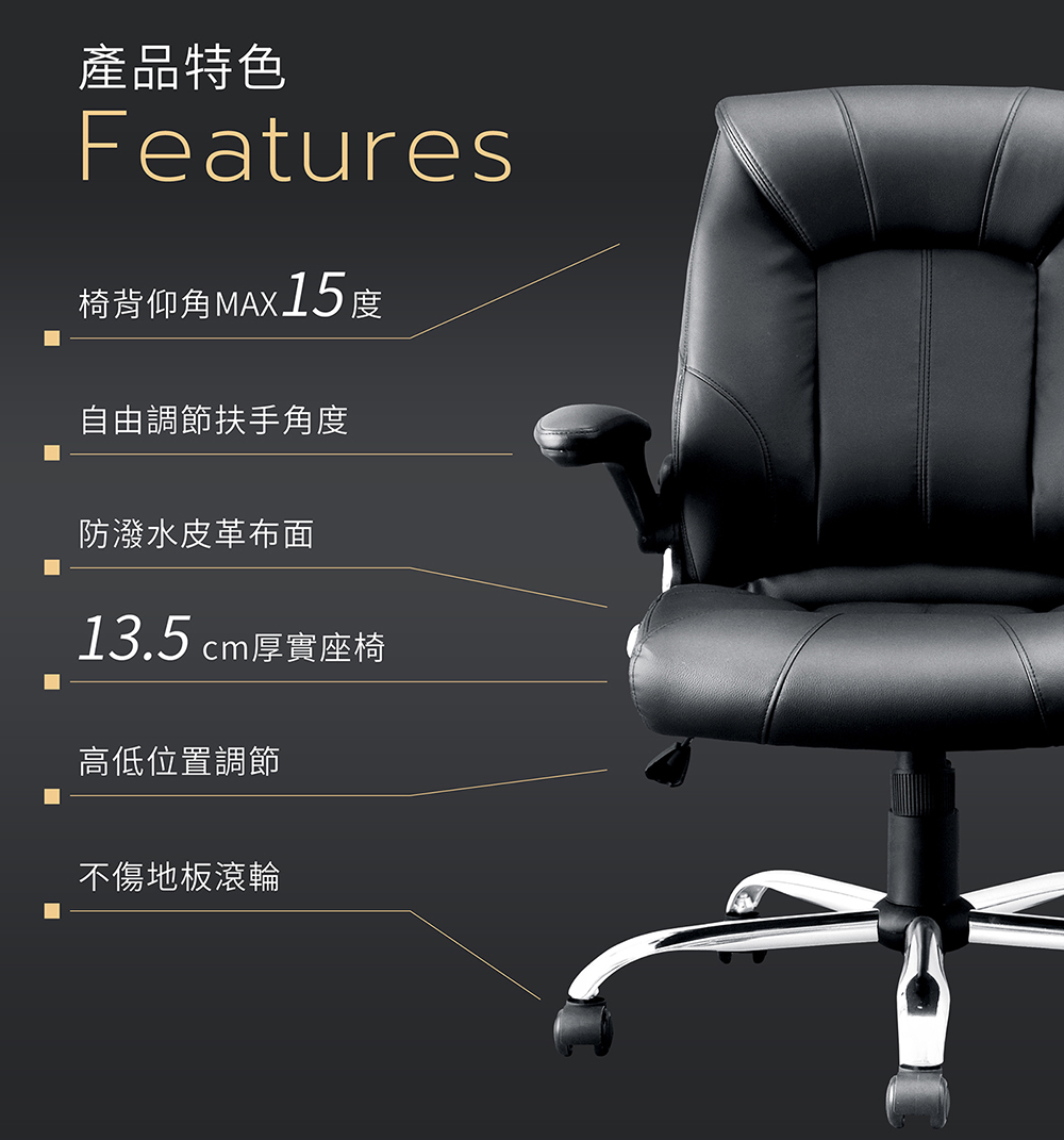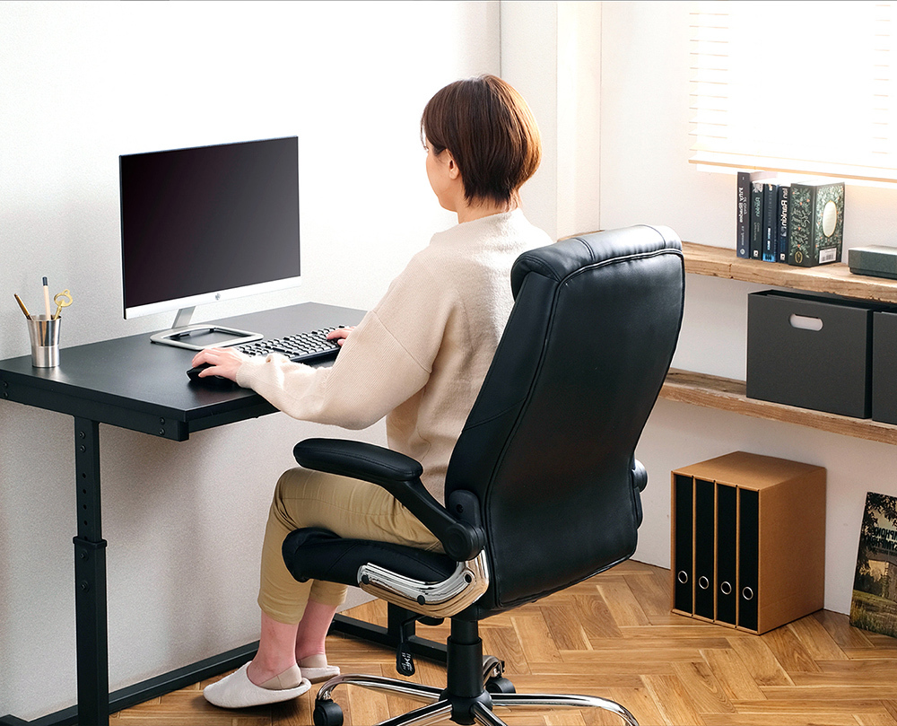 • 具有支撐度的坐墊,長時間坐著也不易感到疲累的皮革辦公椅