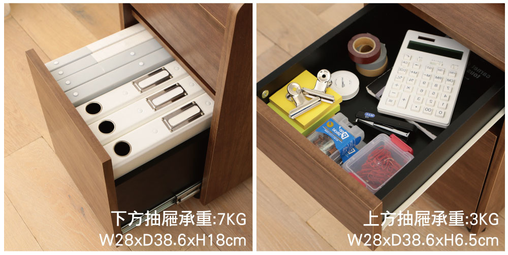 商品尺寸:W312*D465*H590mm 抽屜內尺寸(約):上231*386*65mm、下230*386*180mm 耐重量(約):全體:20kg、天板10kg、抽屜(上)3g、抽屜(下)7kg 材質:本體:塑合板‧MDF、輪子:聚丙烯 產地:中國