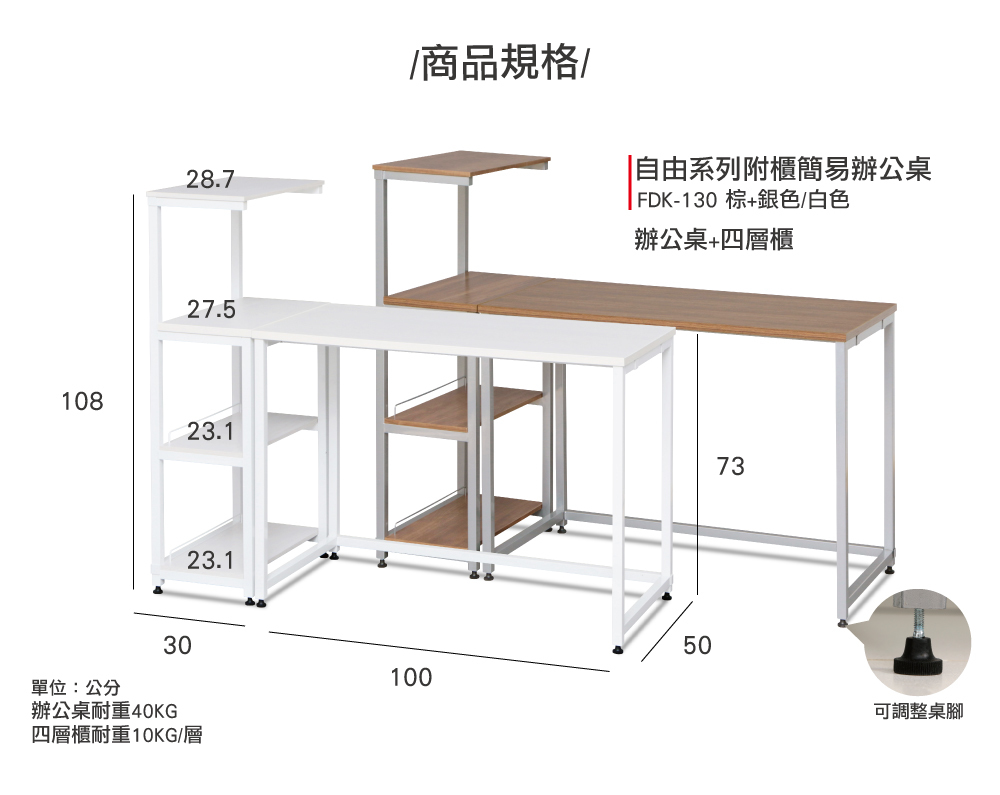 商品名稱:自由系列附櫃簡易辦公桌 FDK-130