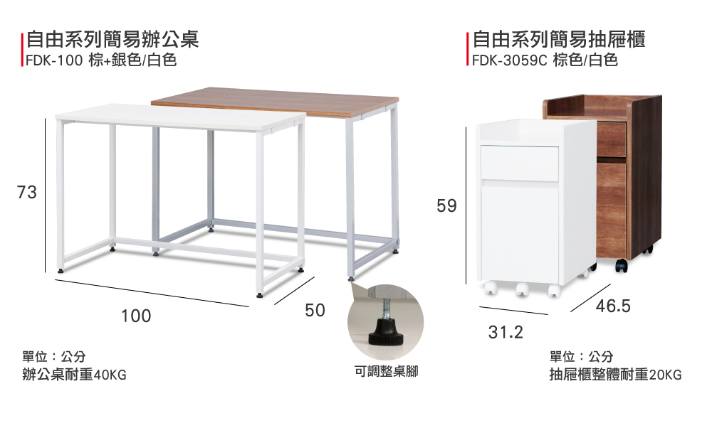 商品名稱:自由系列簡易辦公桌 FDK-100