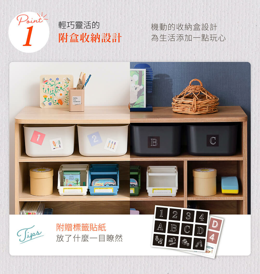 • 附贈3個收納盒及標籤貼紙,讓收納變的輕鬆方便