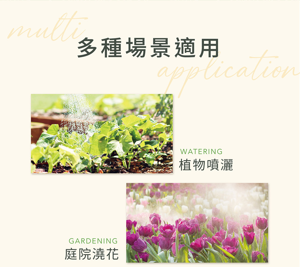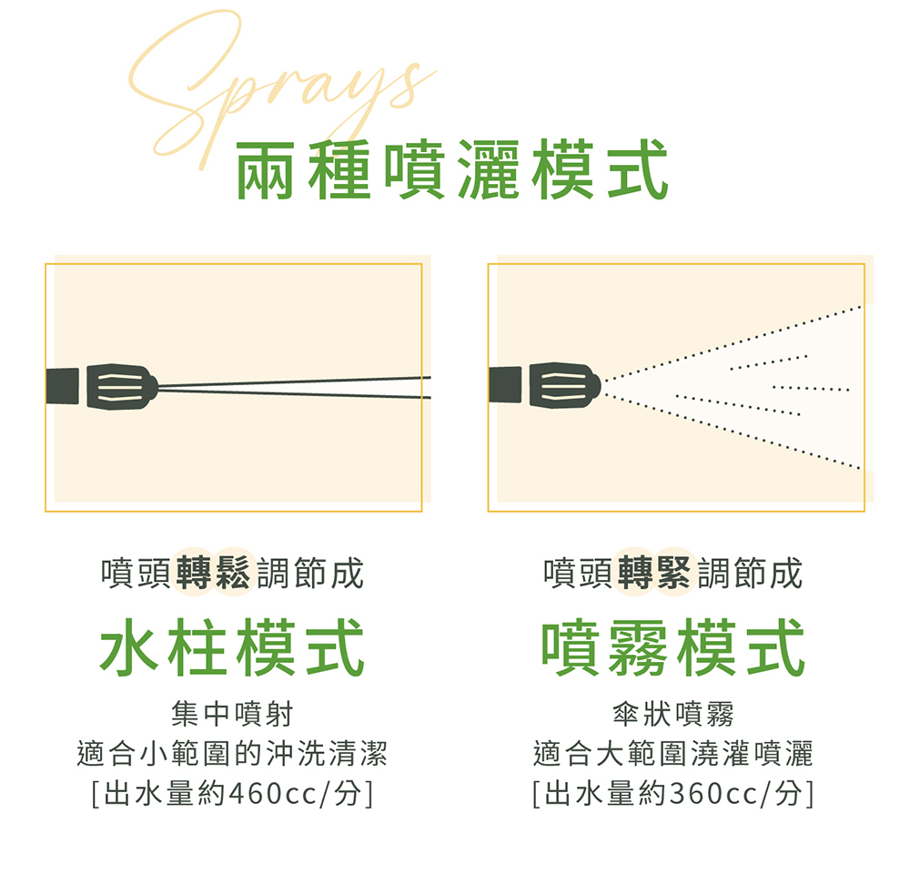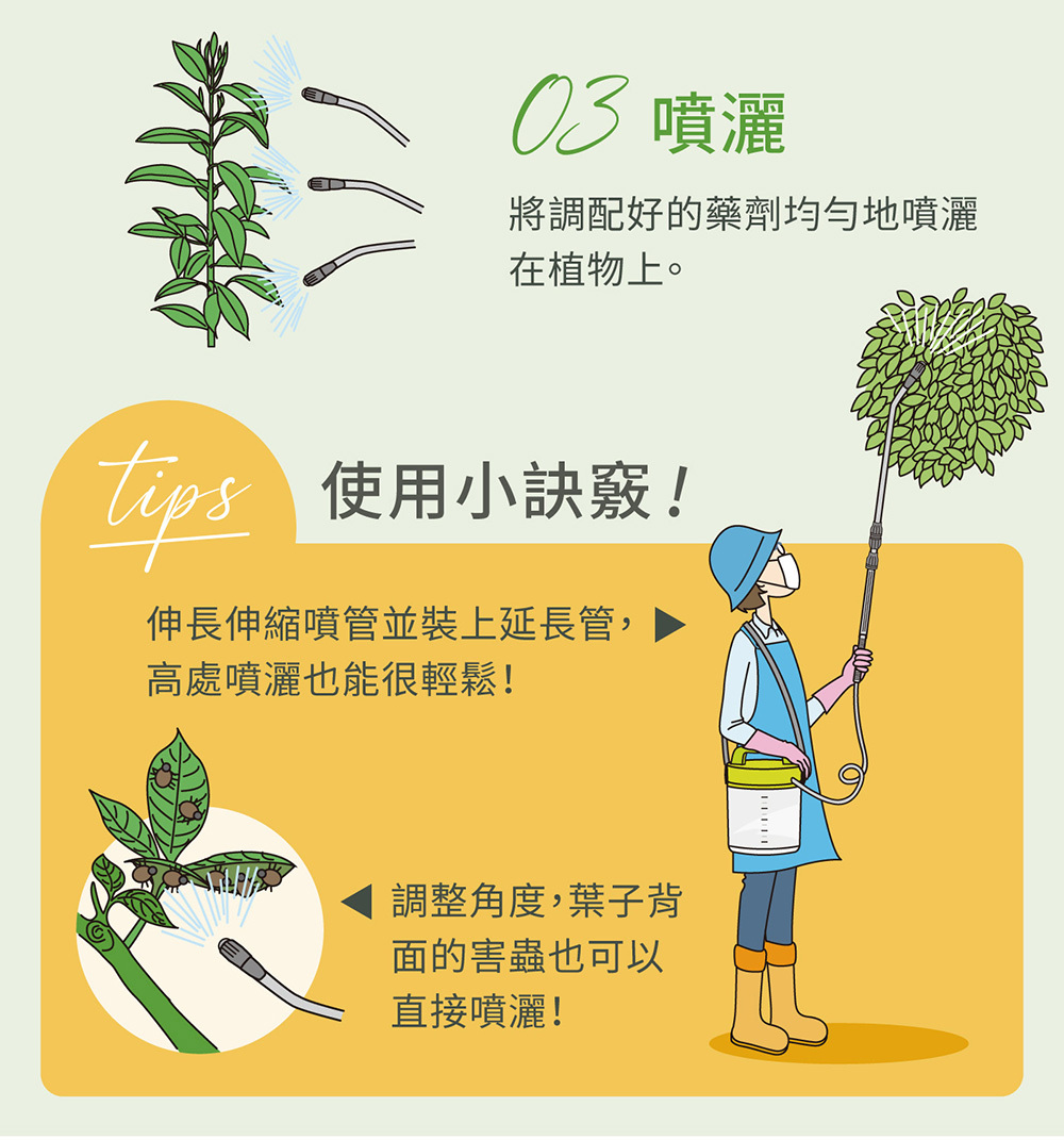 • 裝上附屬的延長管後,噴嘴最大可延長至110cm