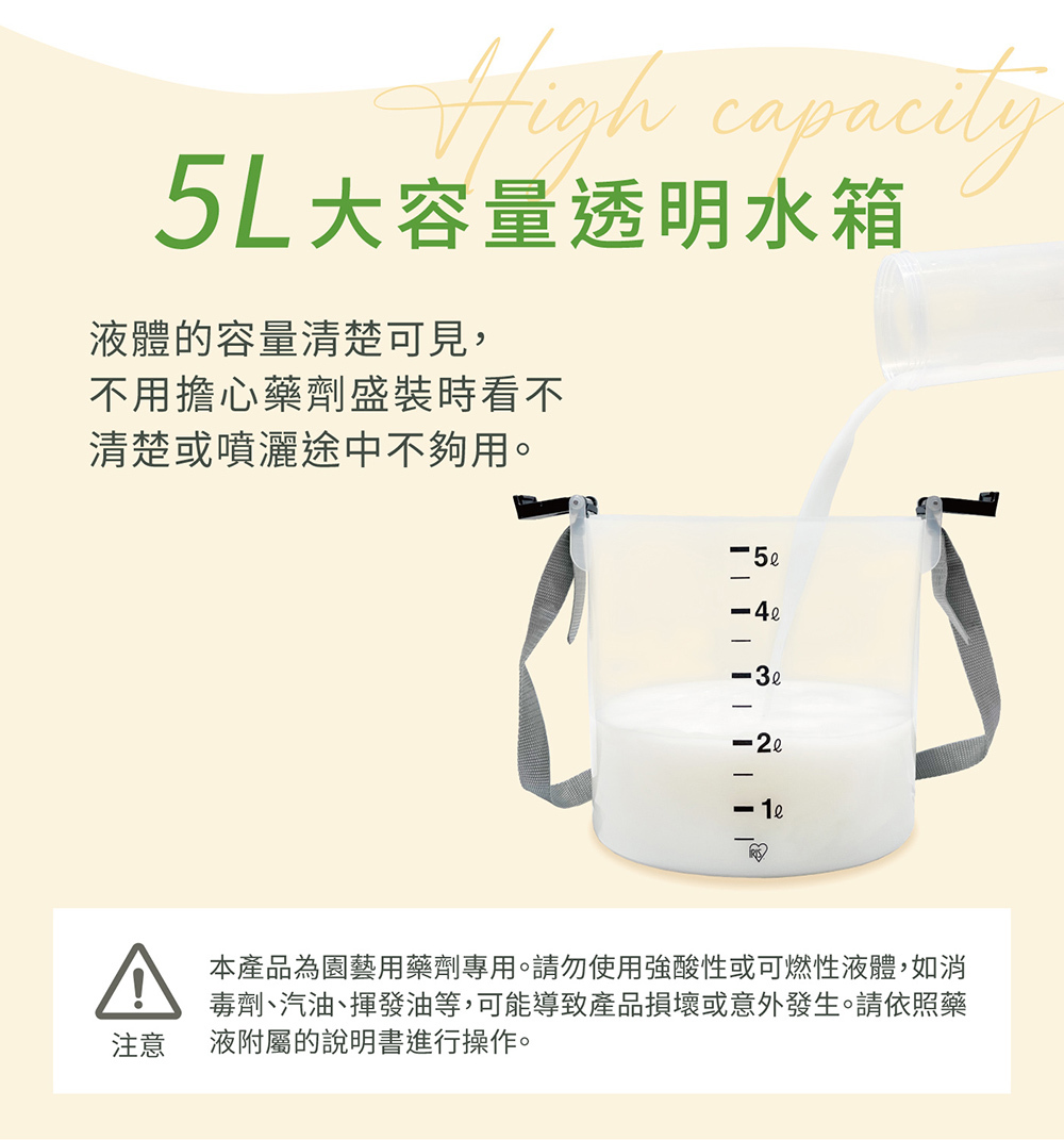 • 5公升大容量透明水箱
