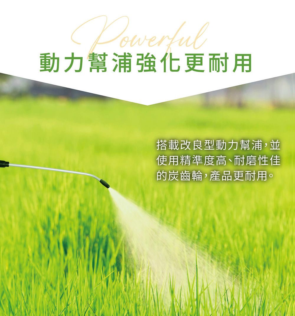 • 內搭載改良型動力泵(幫浦),並使用精準度高、耐磨性佳的炭齒輪