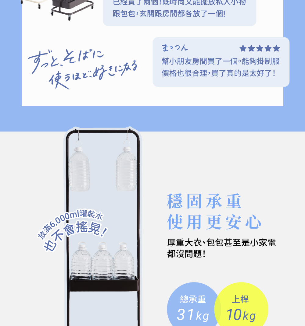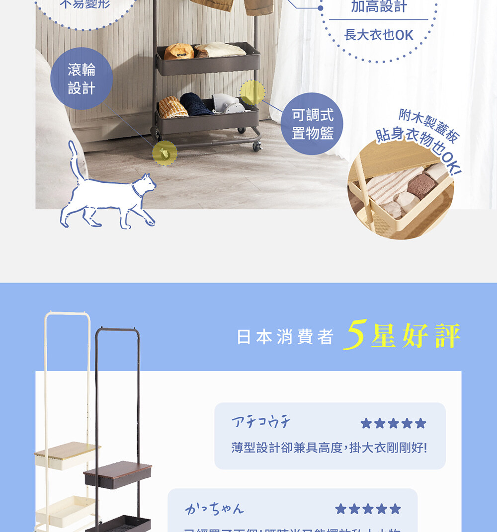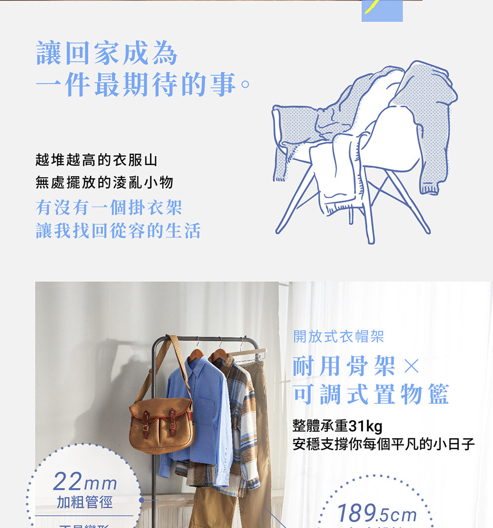 • 189.5 cm加高設計,掛長大衣也OK!