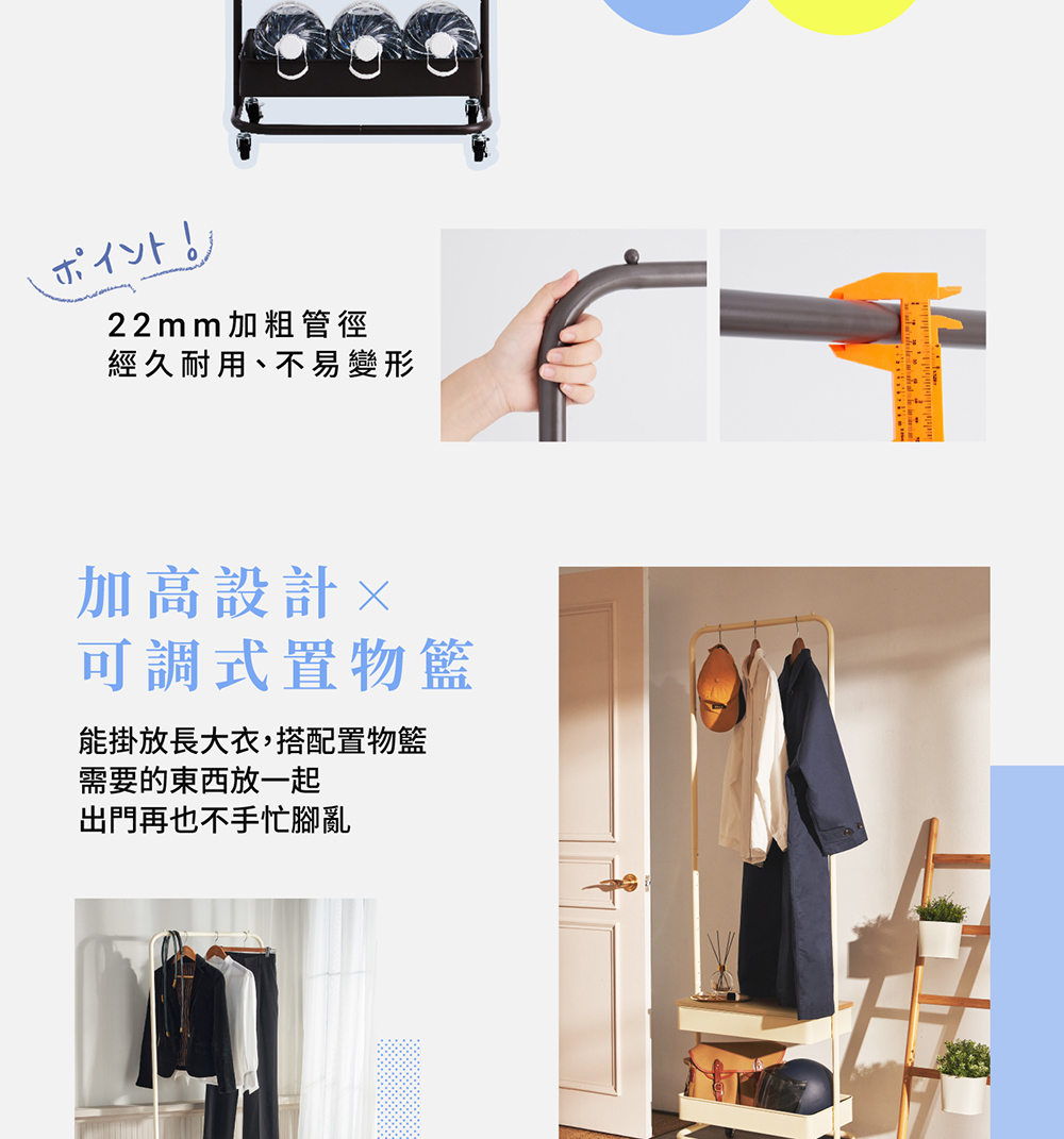 • 22mm加粗管徑,提升耐用度、不易變形