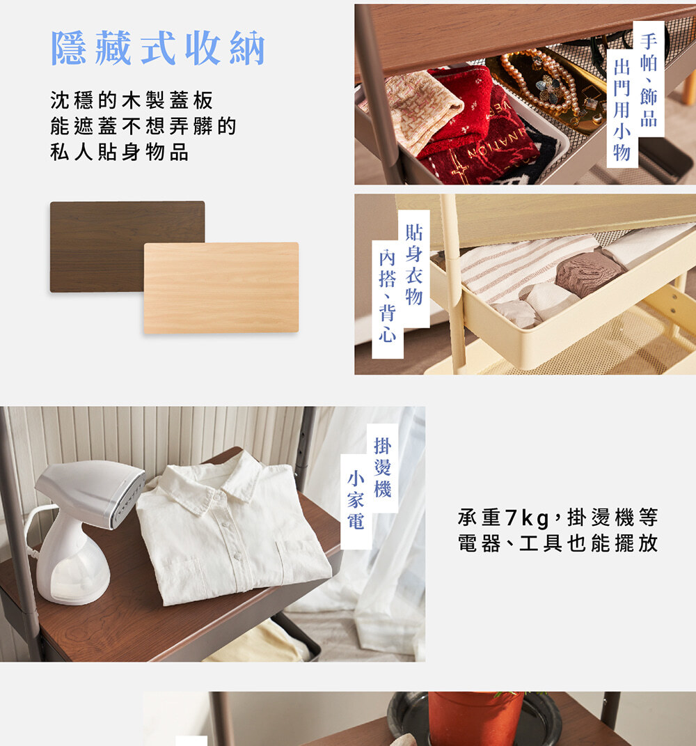 • 附木質蓋板,私人用品、貼身衣物不外露