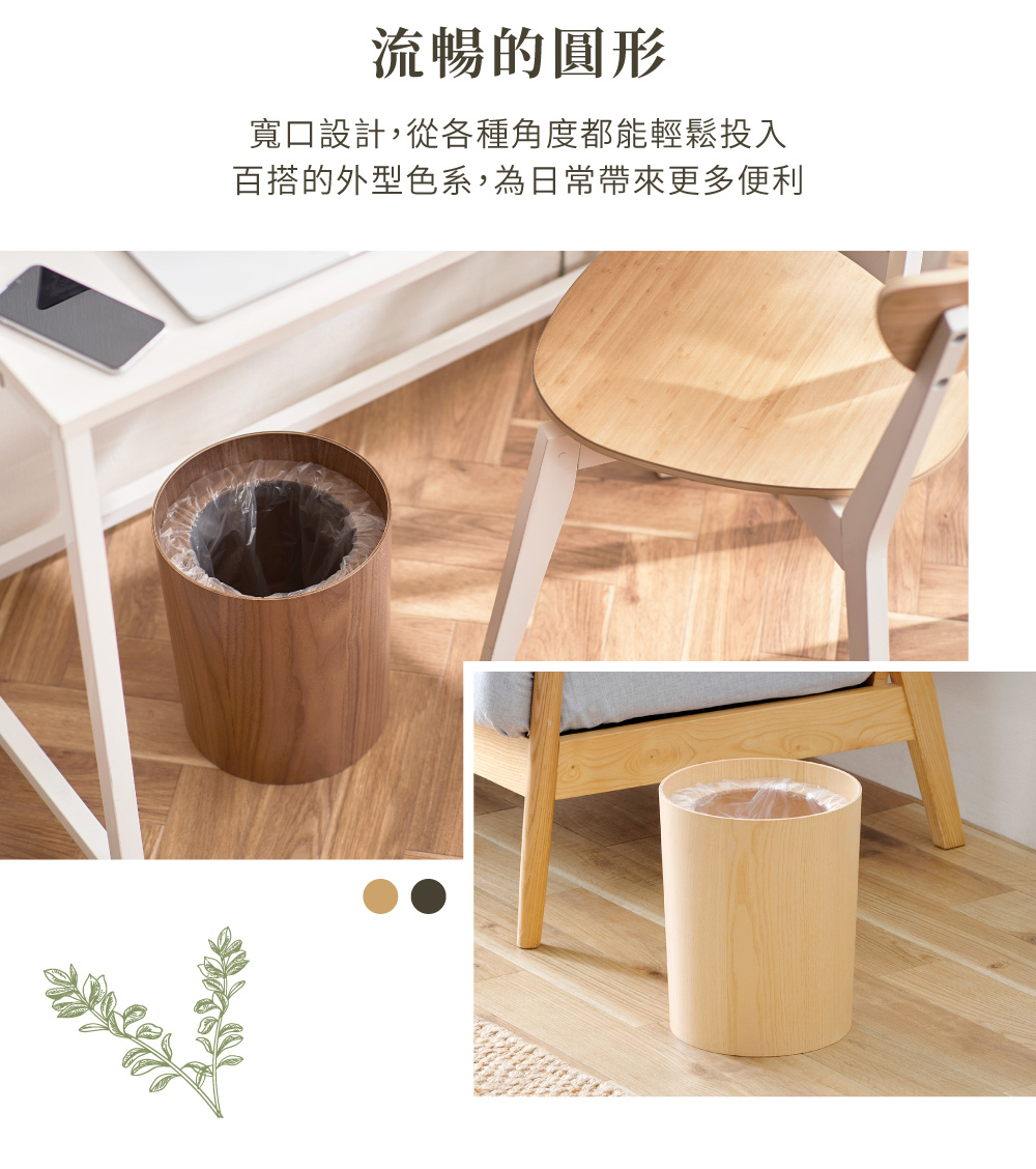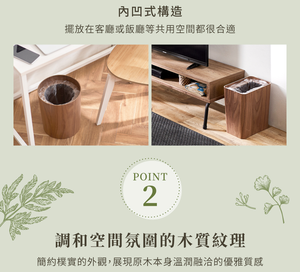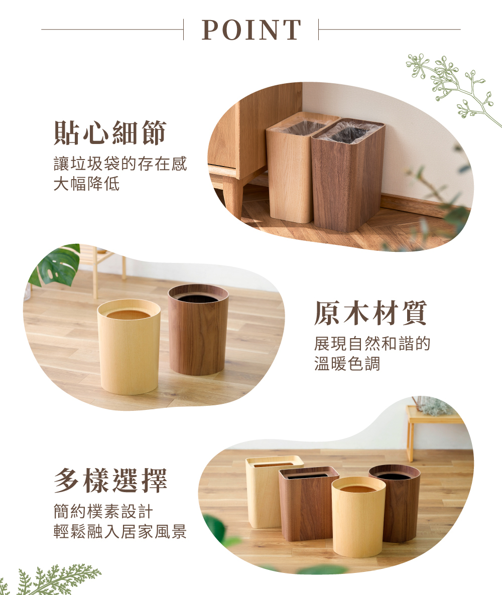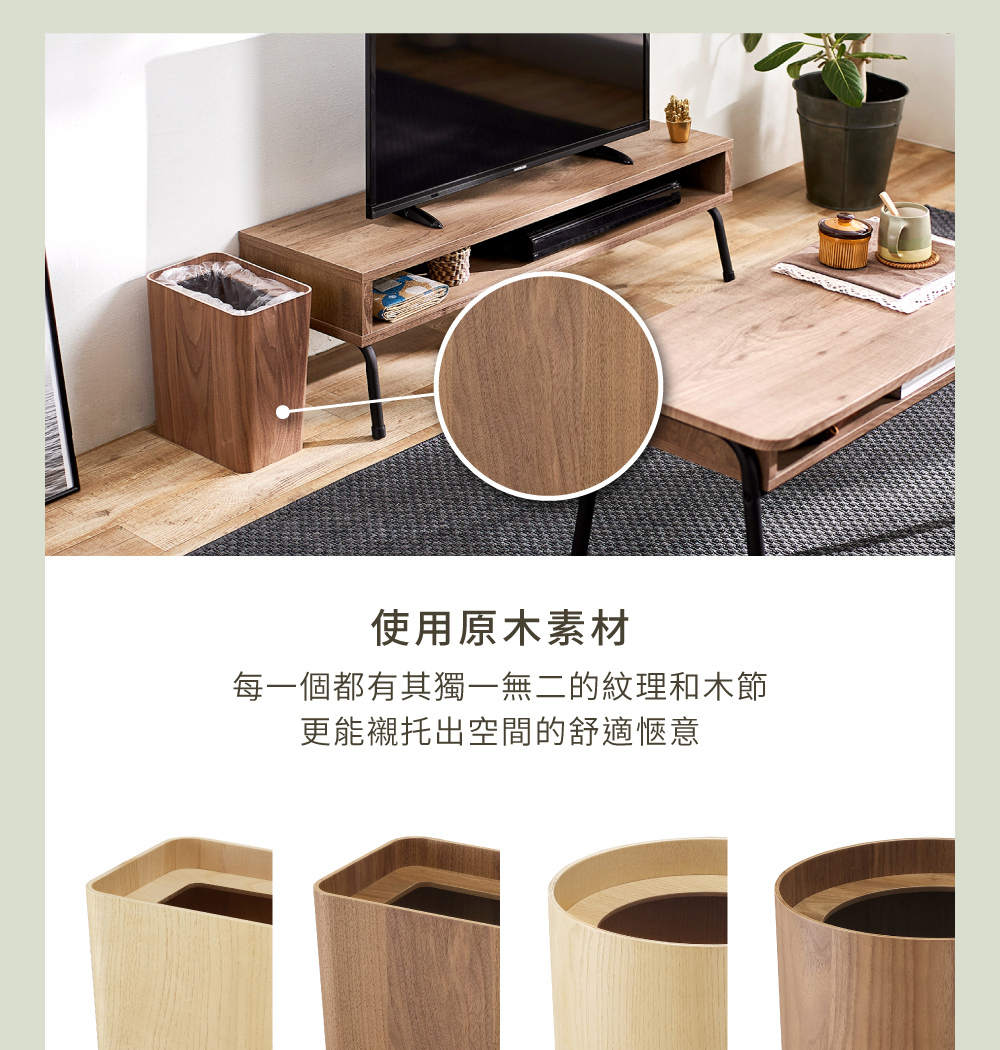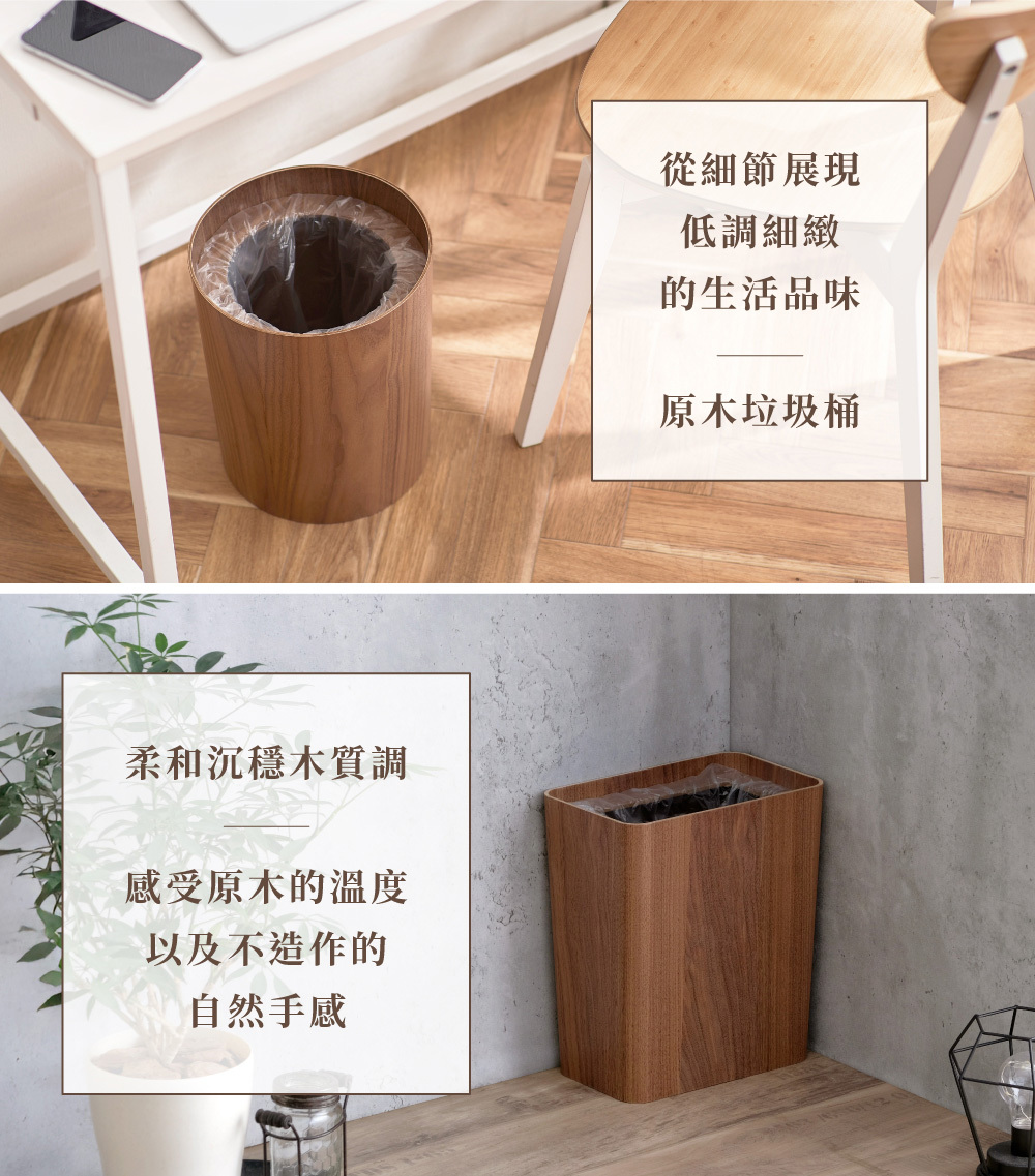 • 使用天然木材製作的木製垃圾桶,營造出沉穩的氛圍