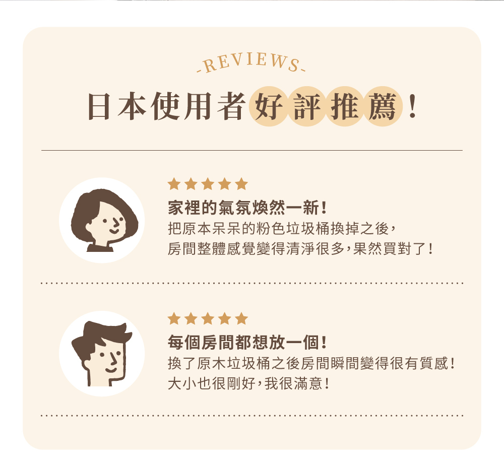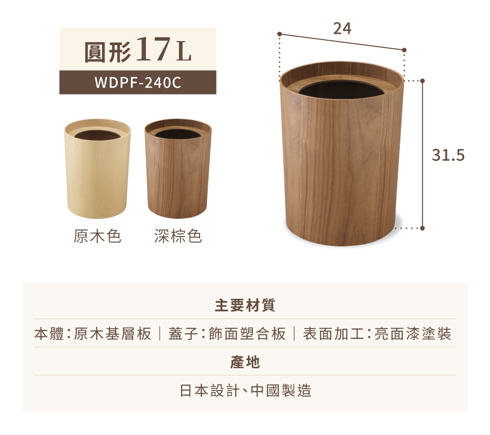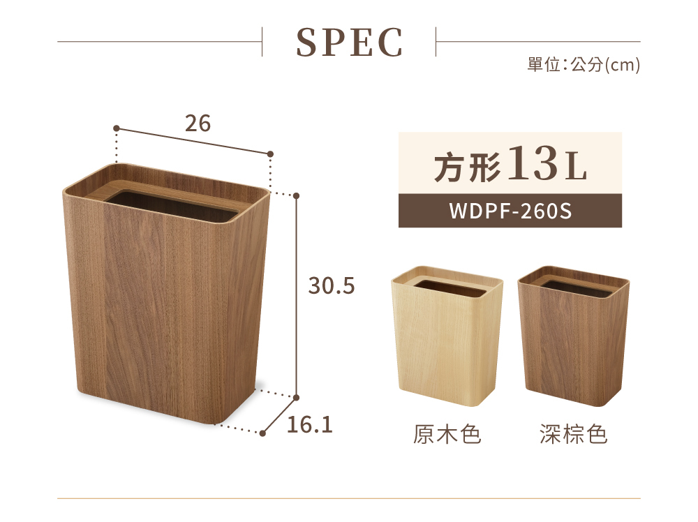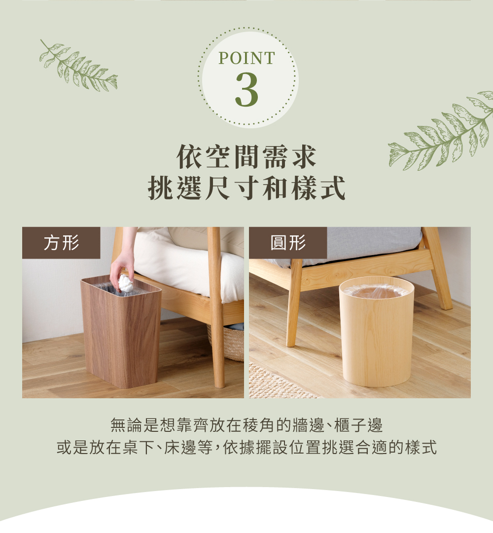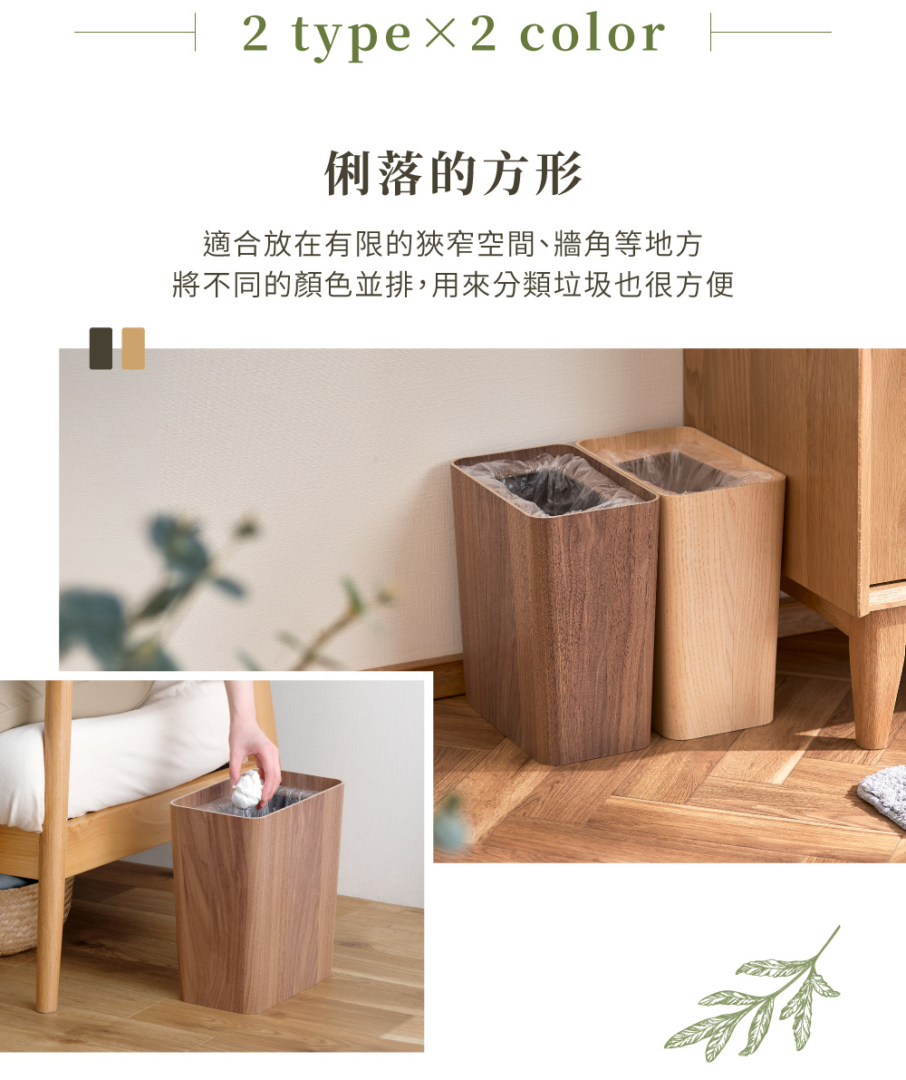 • 使用天然木材製作的木製垃圾桶,營造出沉穩的氛圍