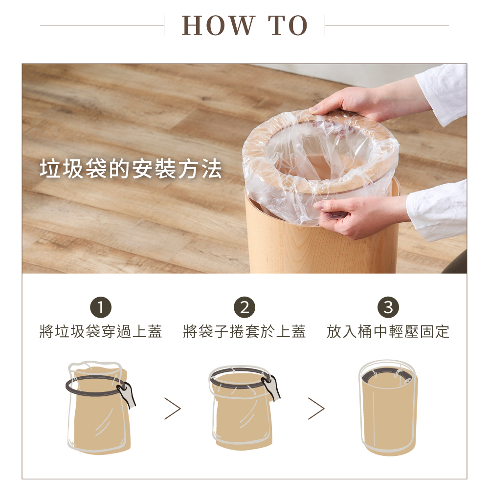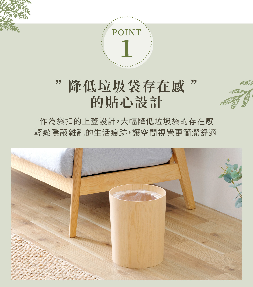 • 袋扣的上蓋設計讓垃圾袋不會外露,讓空間視覺更為簡潔舒適