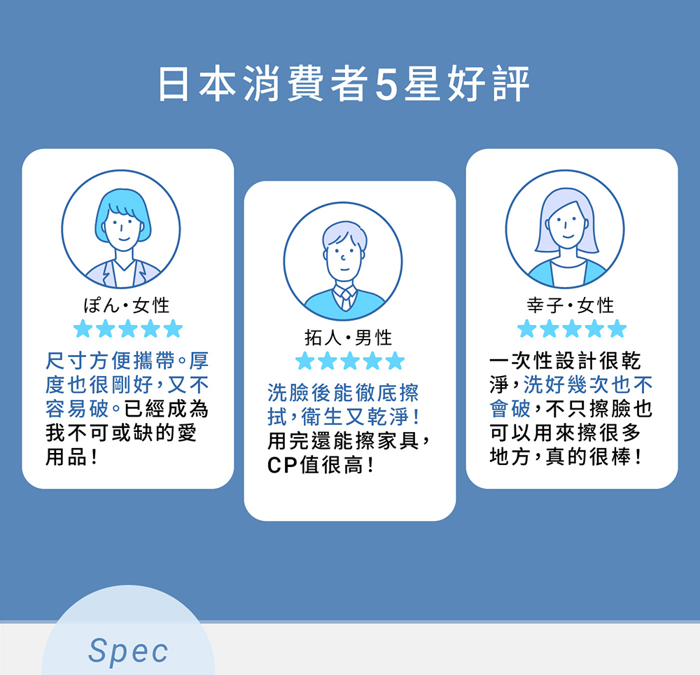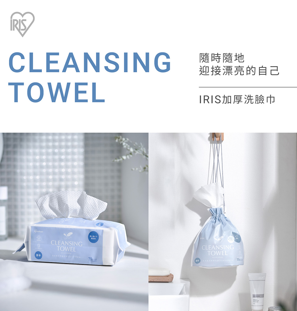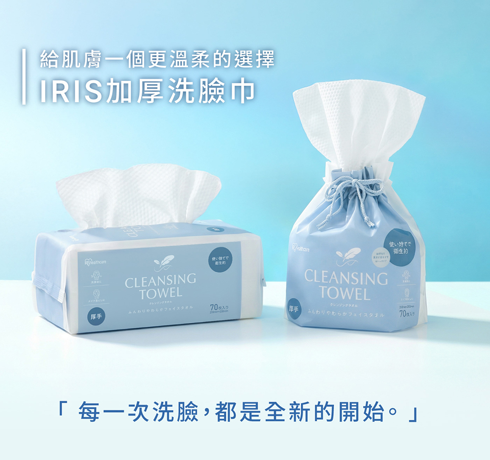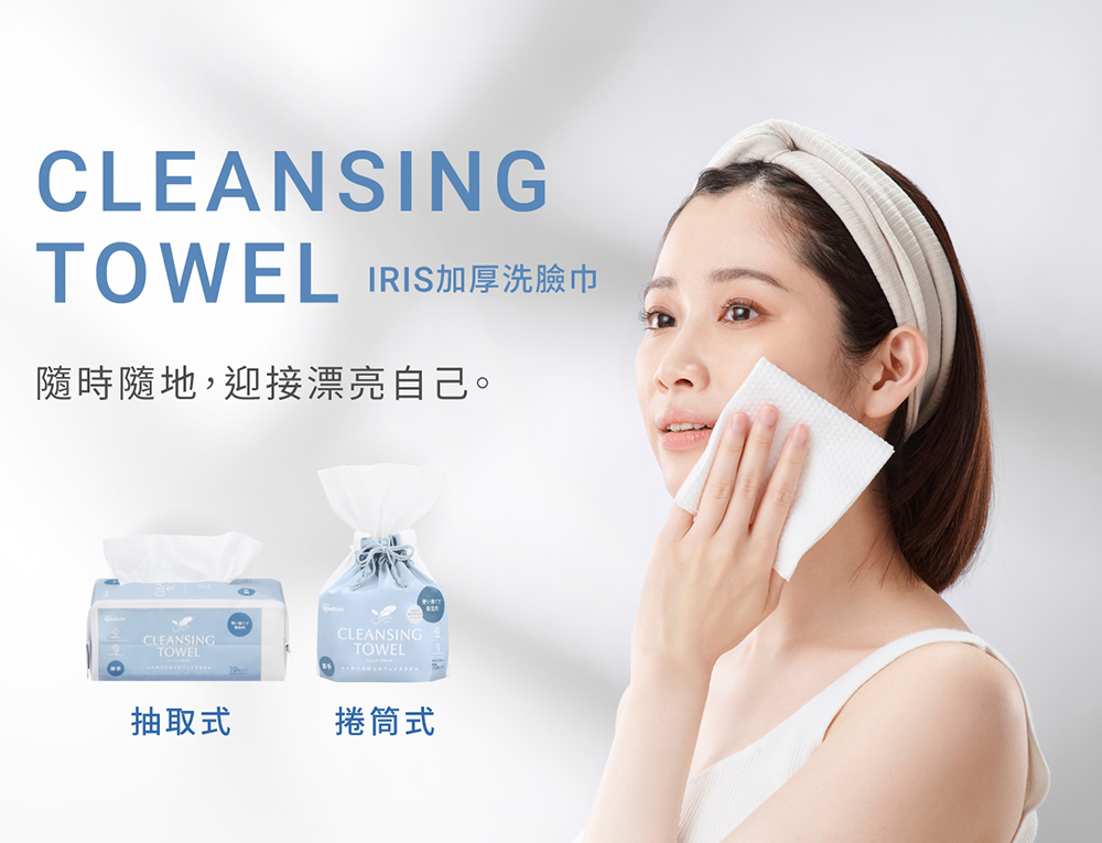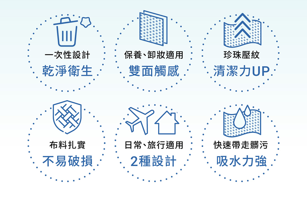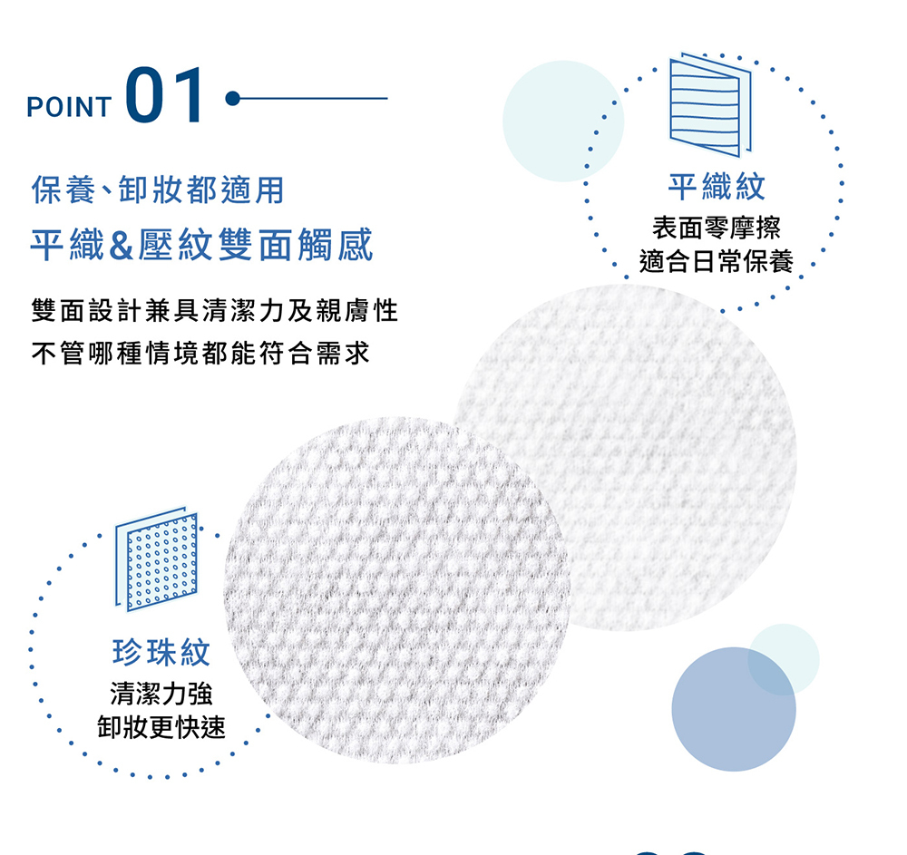 • 平織紋+珍珠紋雙面觸感,保養、卸妝都適合