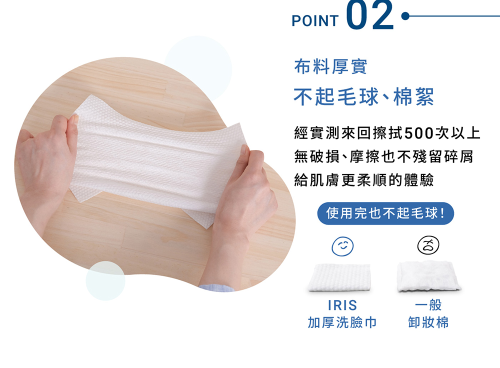 • 來回擦拭500次以上也不殘留碎屑,不易起毛球