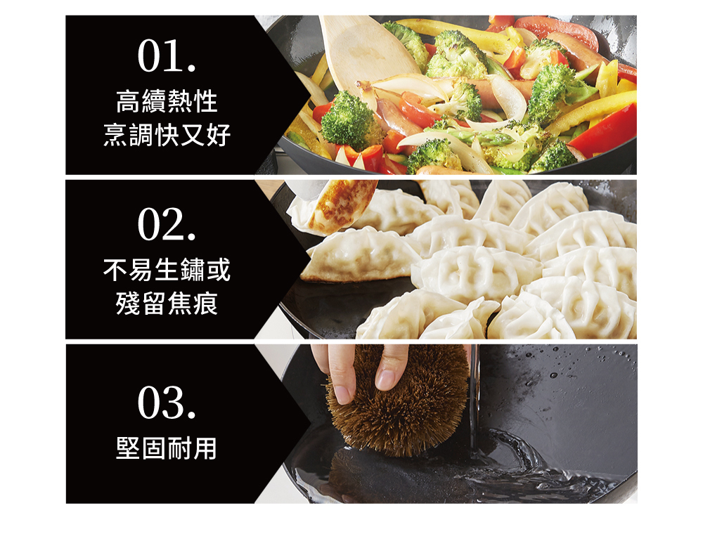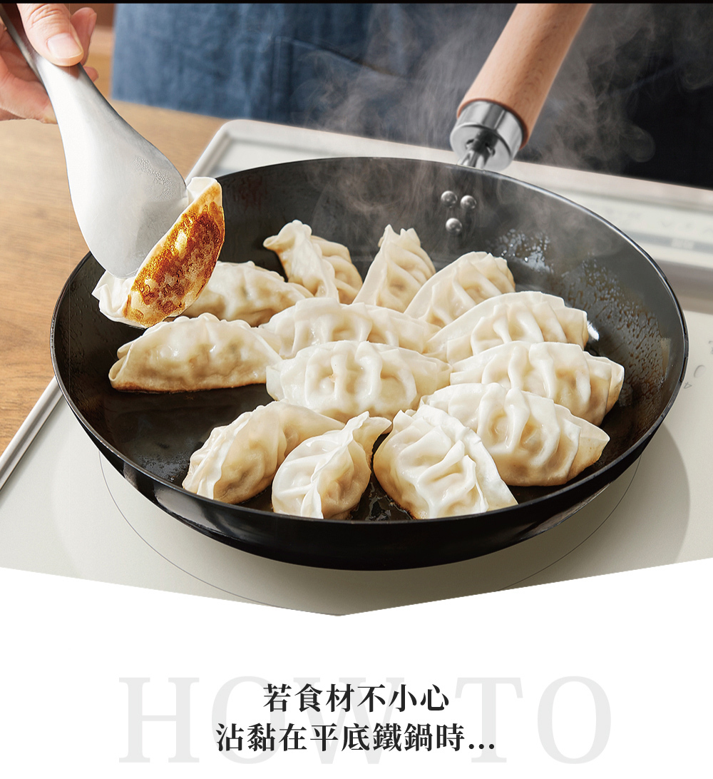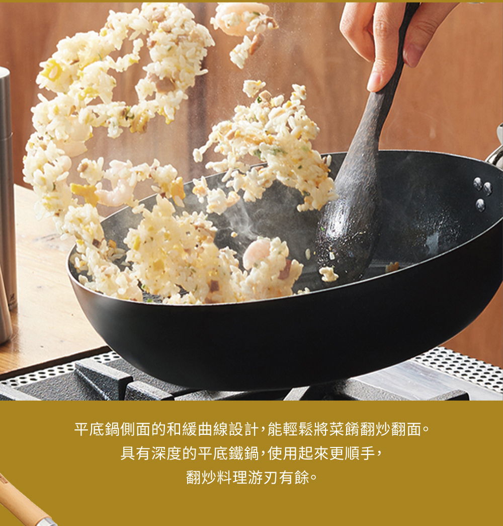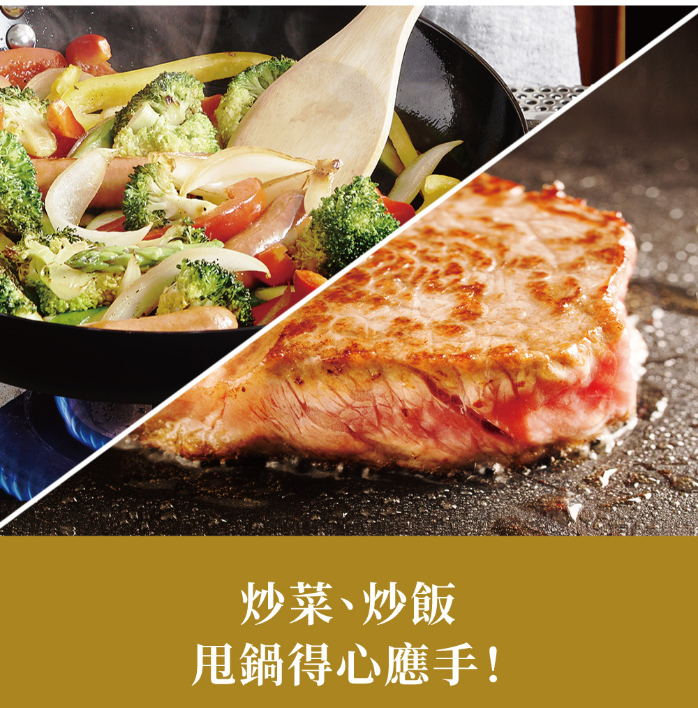 •平底鍋的溫度不易降溫,可封住食材的美味,適用於炒飯和熱炒