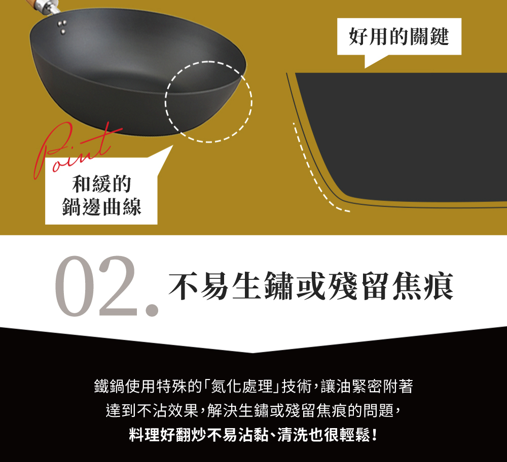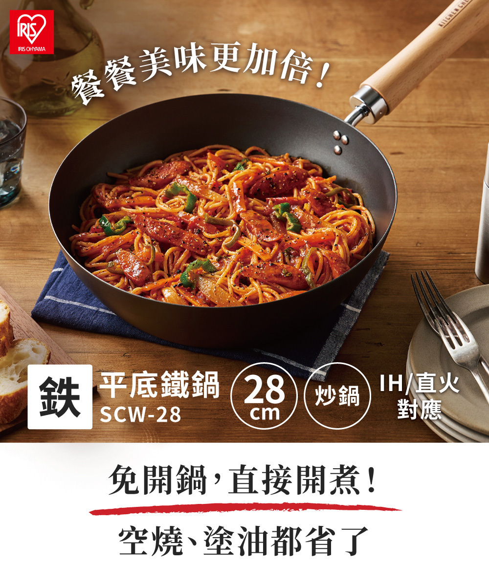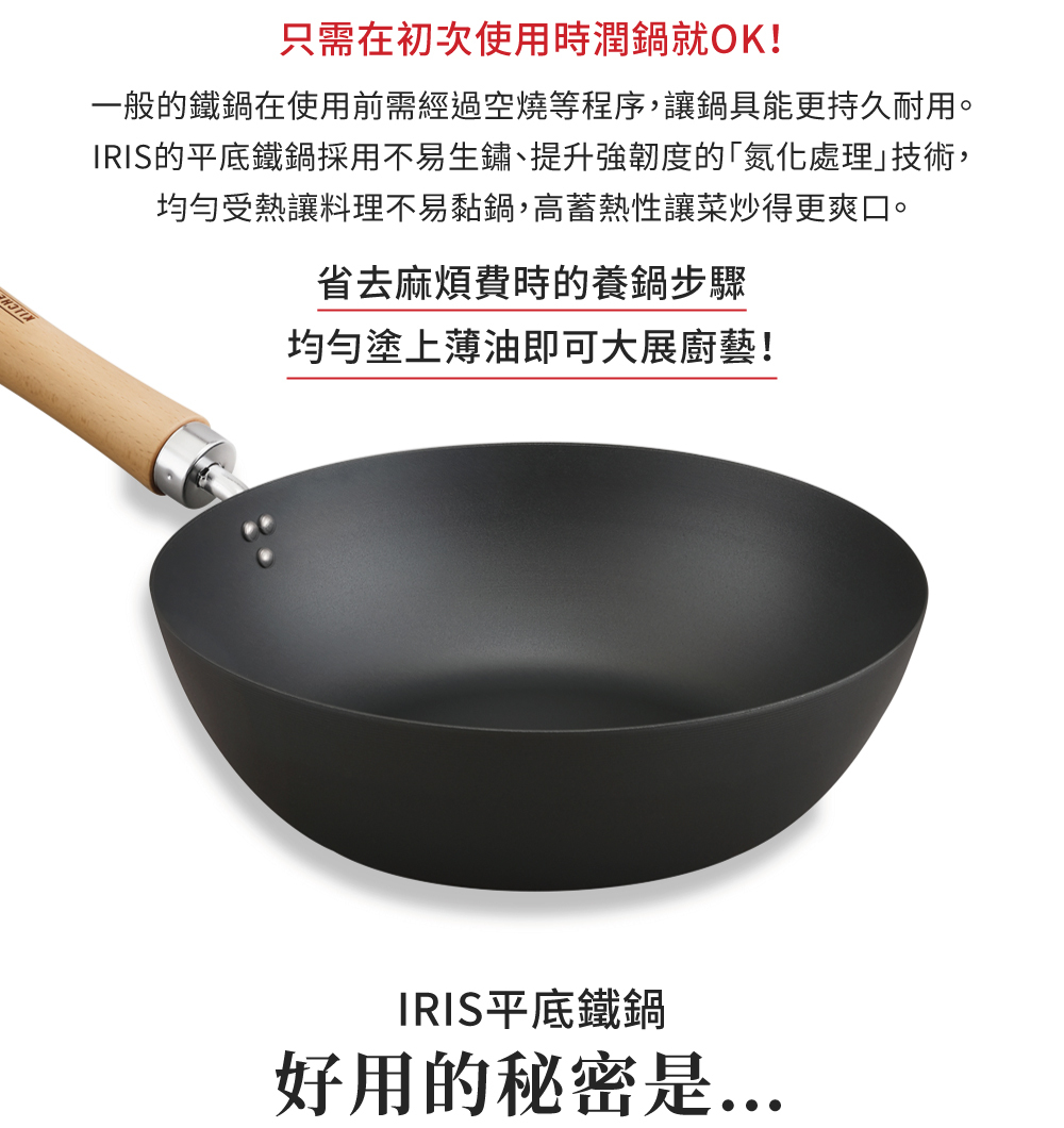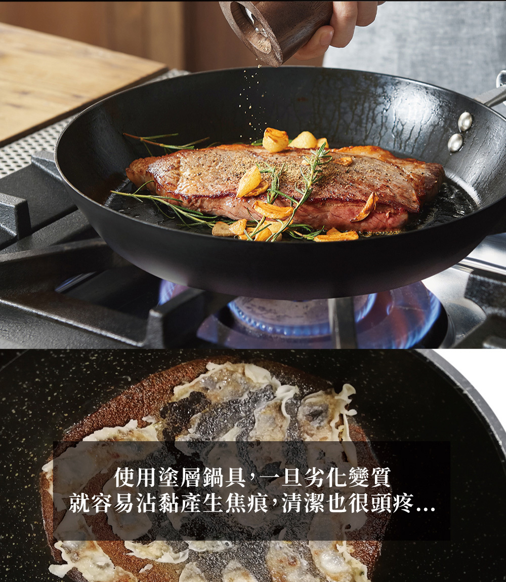 •平底鍋的溫度不易降溫,可封住食材的美味,適用於炒飯和熱炒