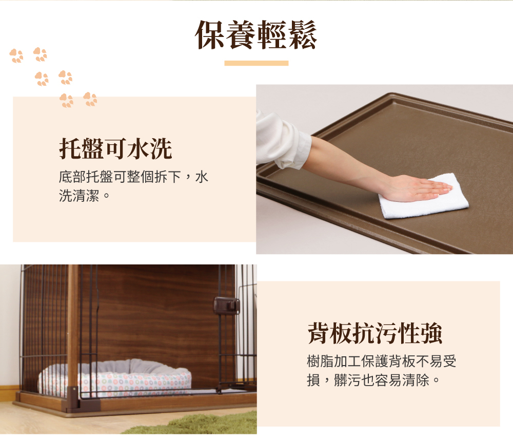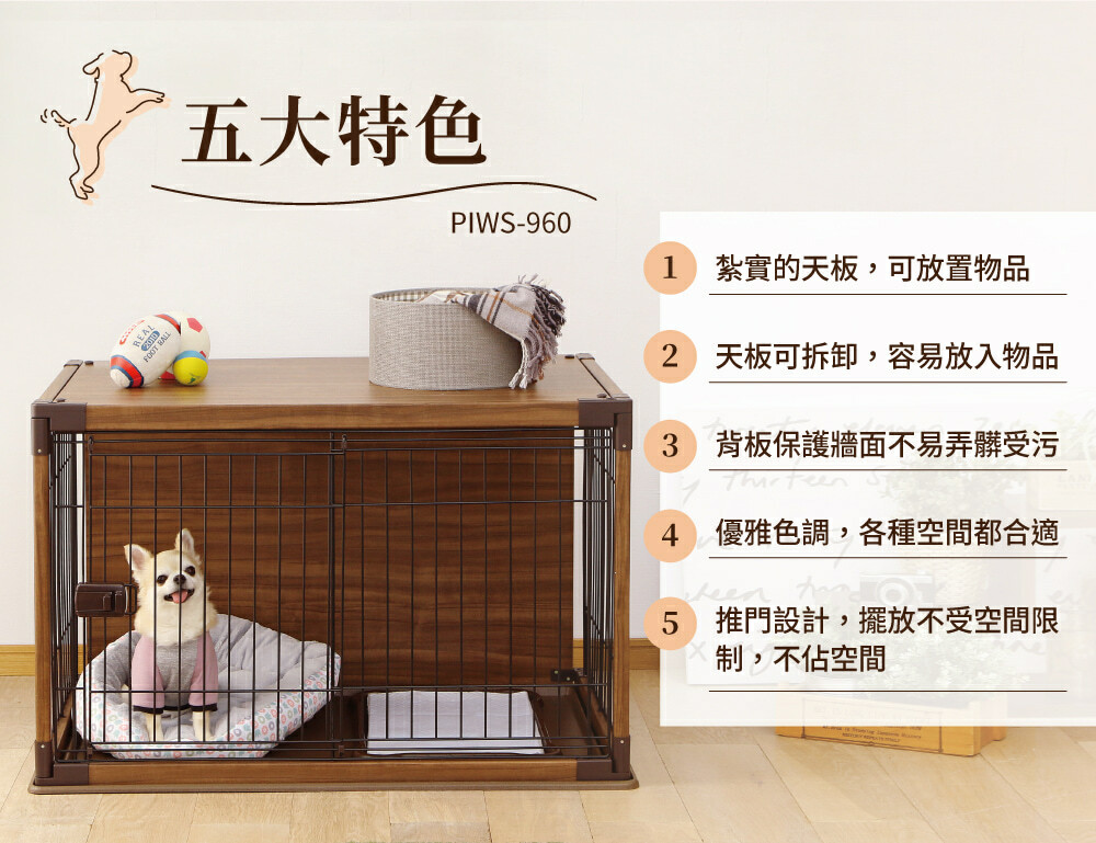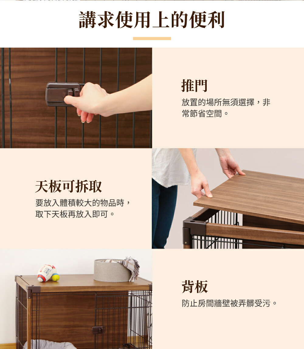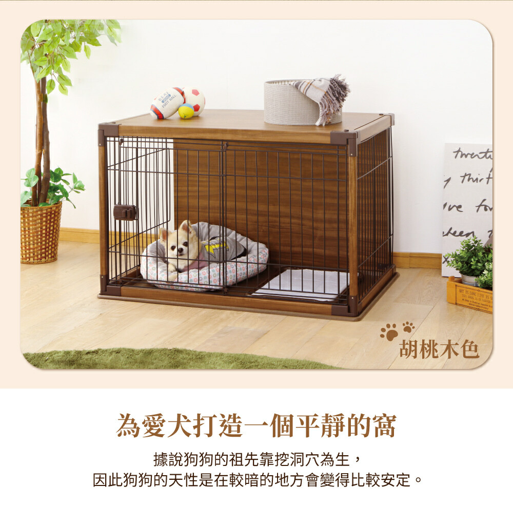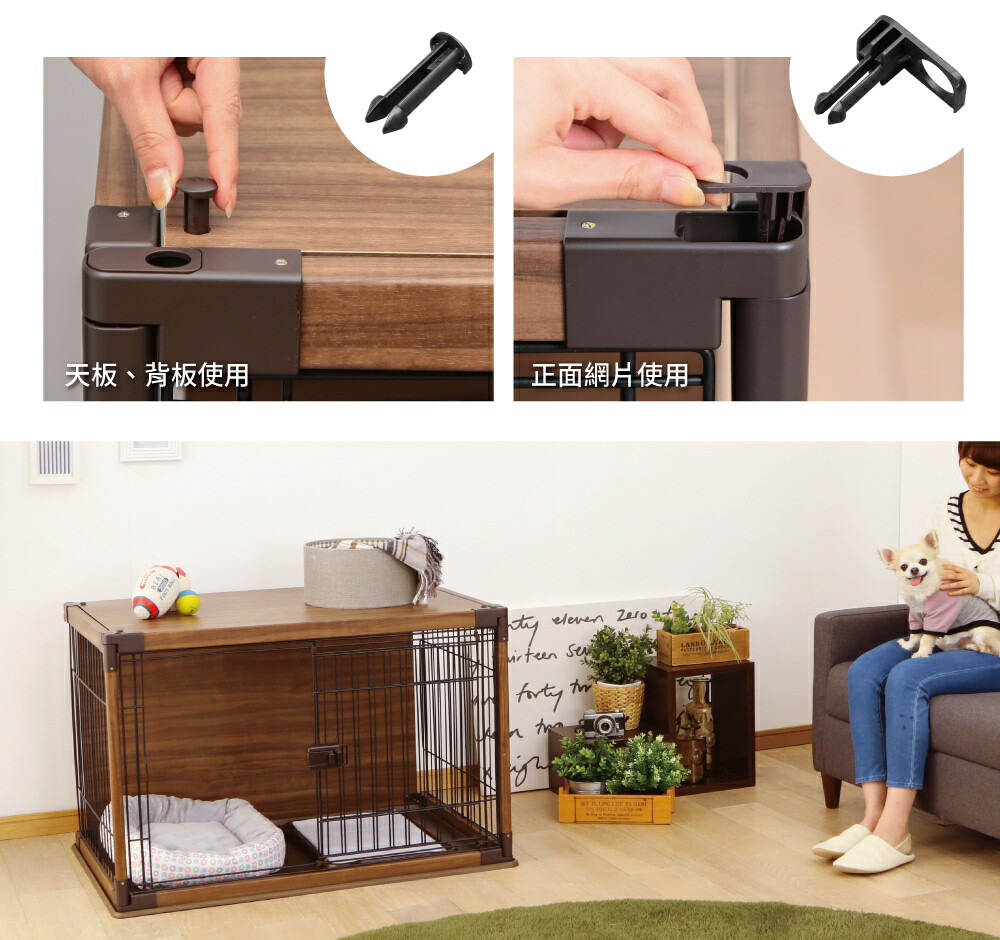 •以讓寵物舒適放鬆為發想的寵物籠,木製的屋頂和背板提供寵物安心休憩的空間