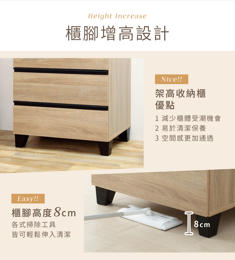 •櫃腳增高,減少櫃體受潮,清潔更便利