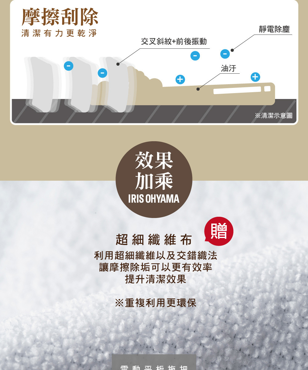 • 也可搭配使用市面上販售的靜電除塵紙,比傳統水洗抹布省時省力