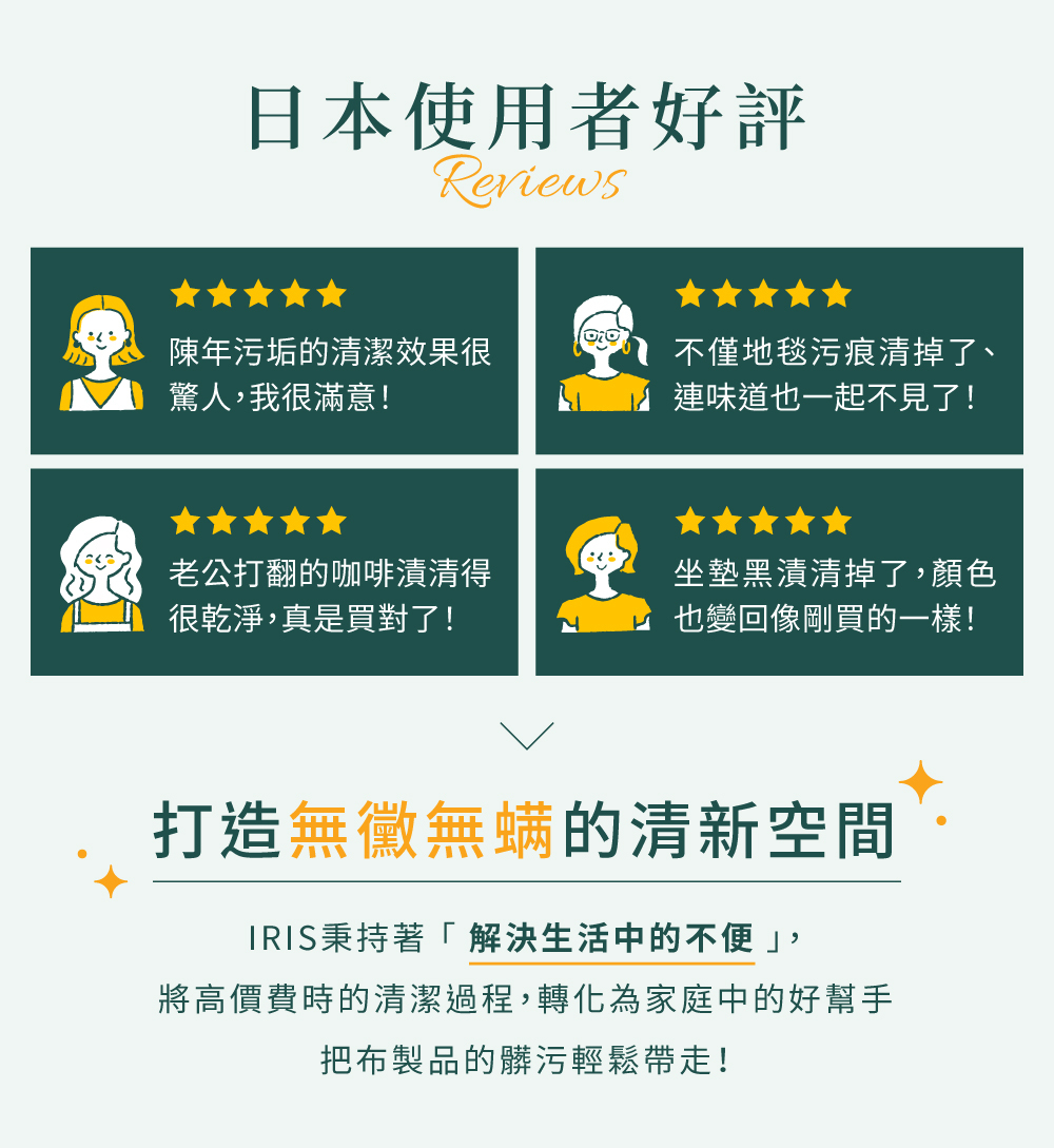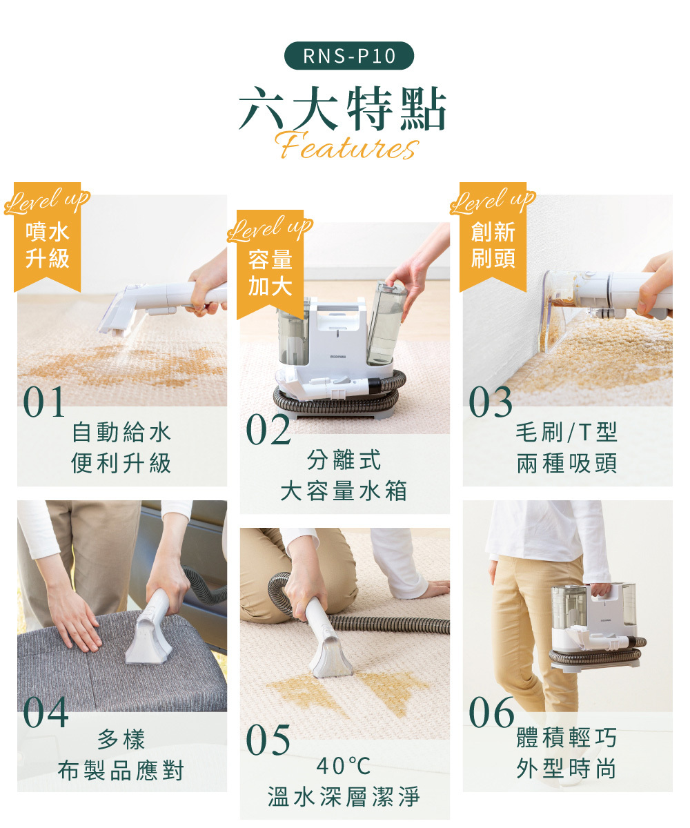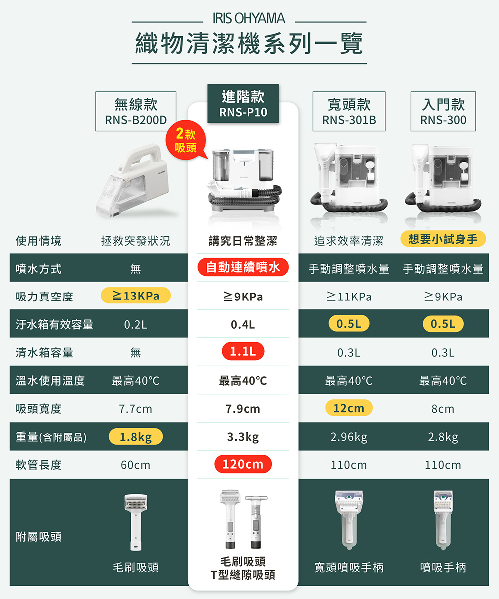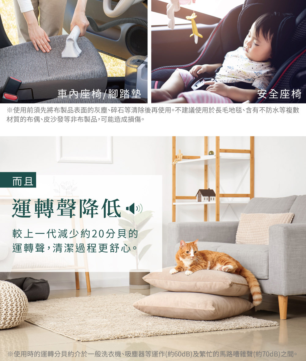 • 毛刷、T型兩種吸頭,幫助髒污更好被吸出