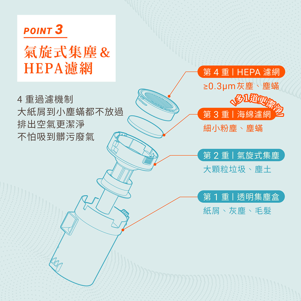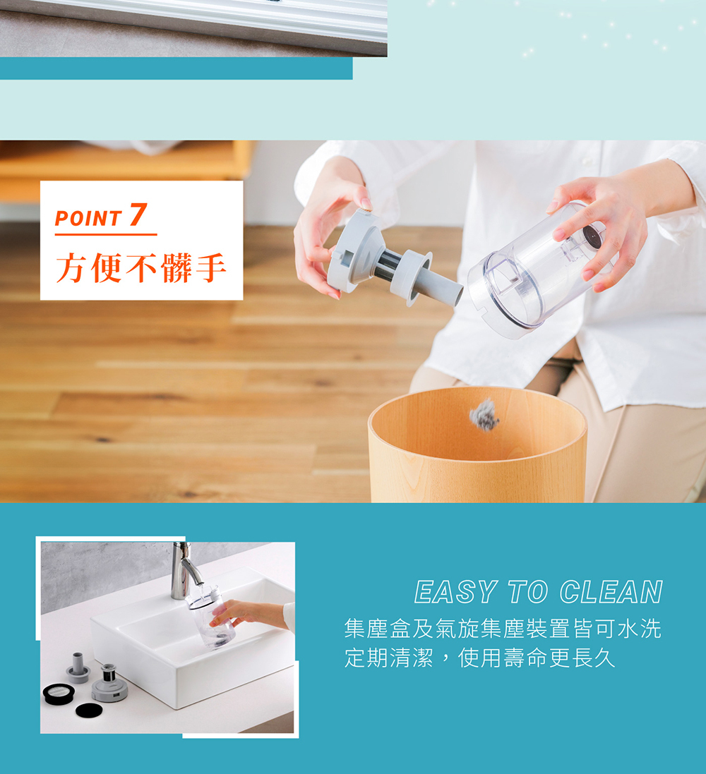 • 可水洗的集塵盒,使整體使用壽命大幅增長
