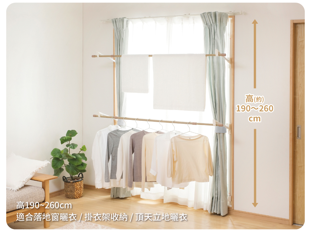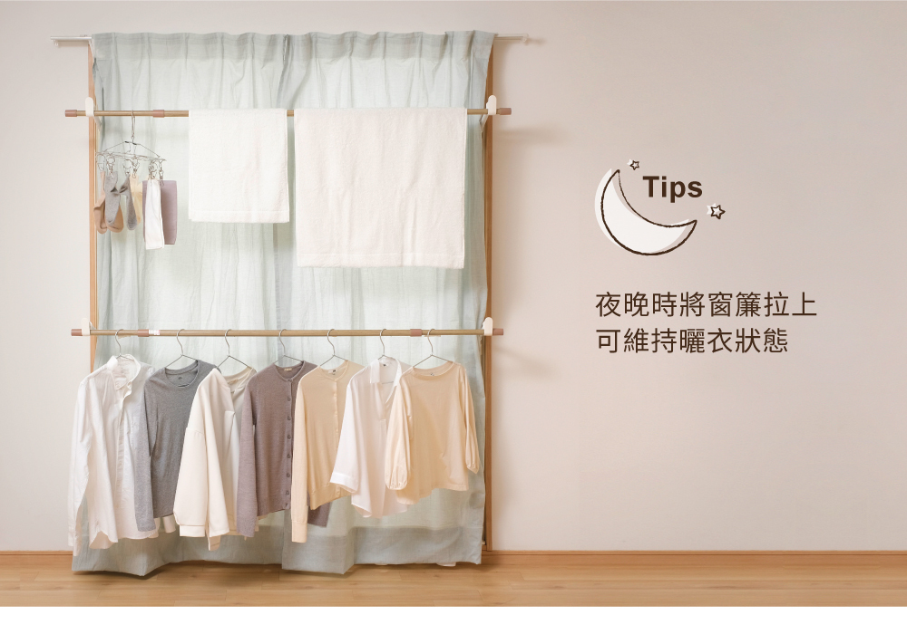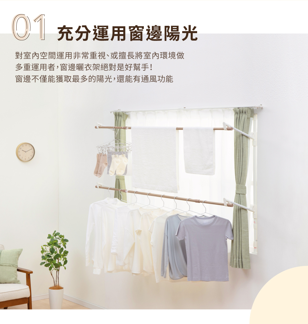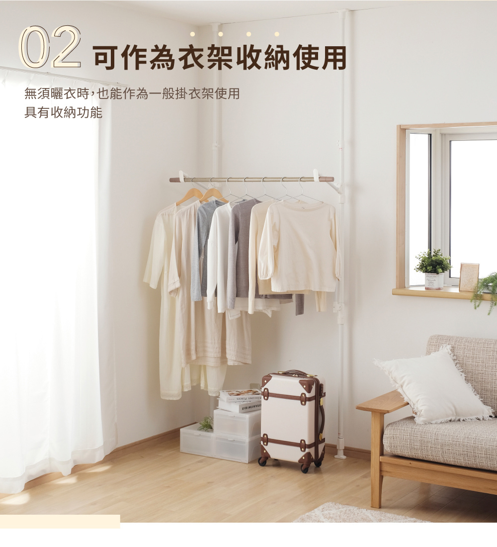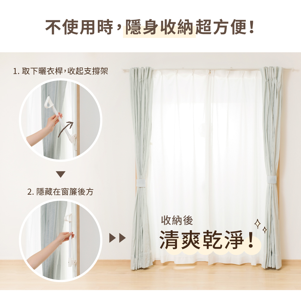• 不僅能固定於窗框、還能靈活裝設各種地方增加曬衣空間