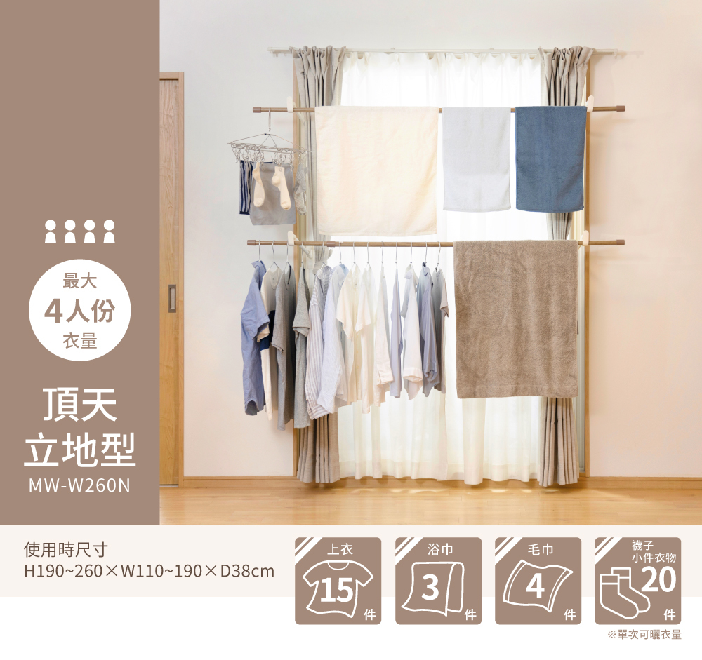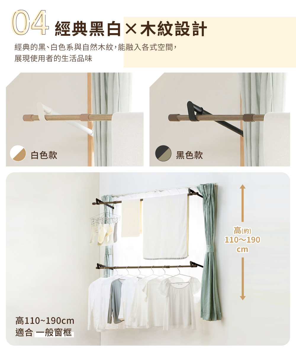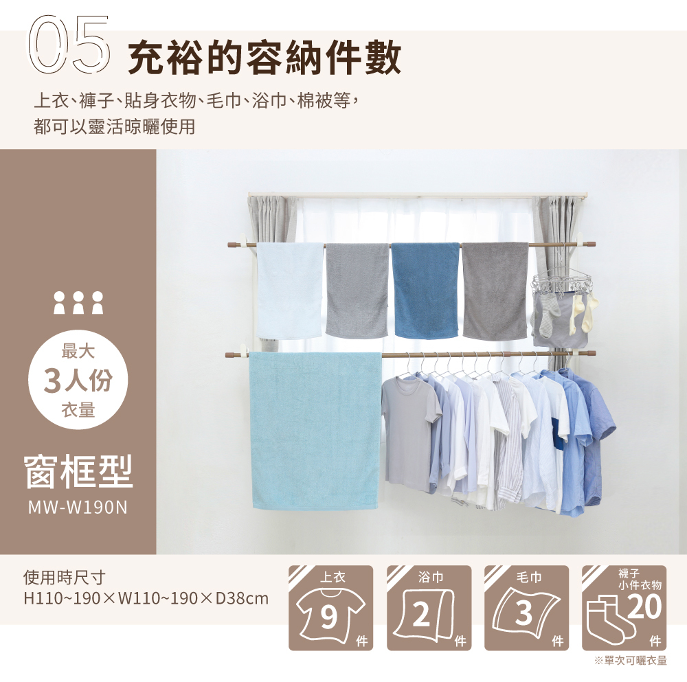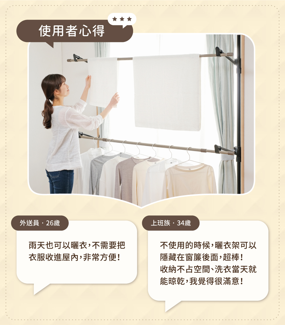 • 不僅能固定於窗框、還能靈活裝設各種地方增加曬衣空間