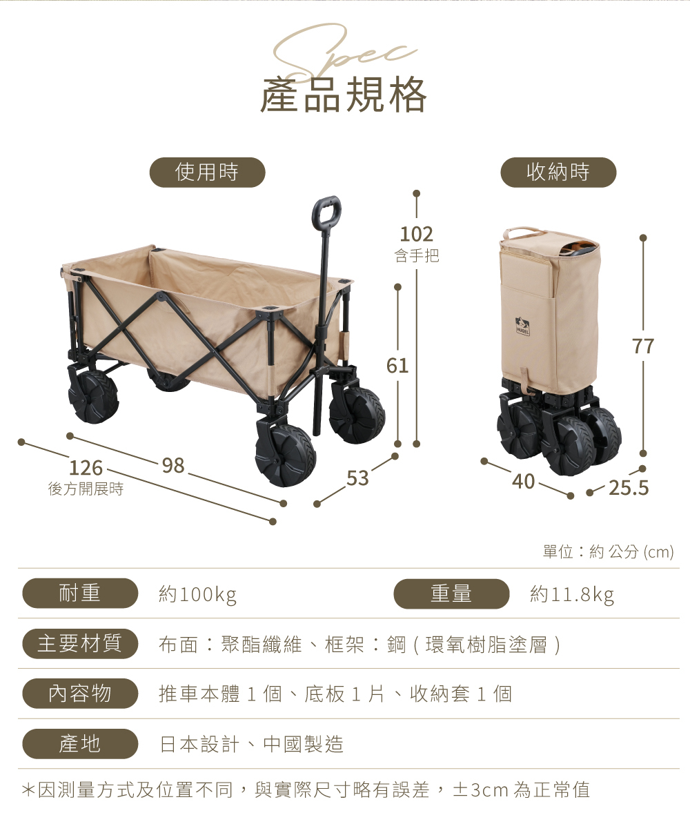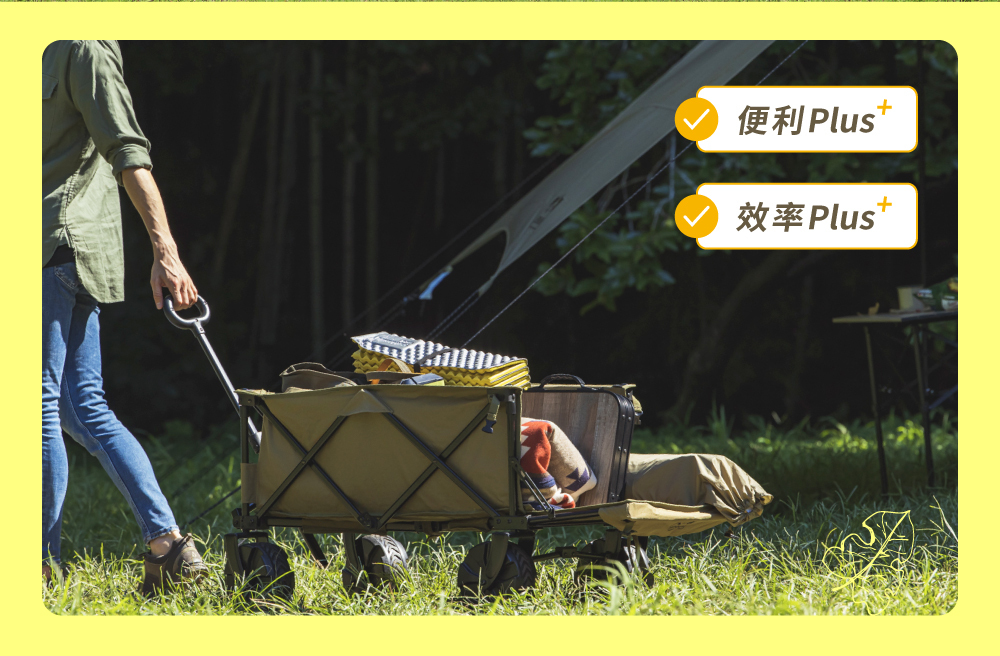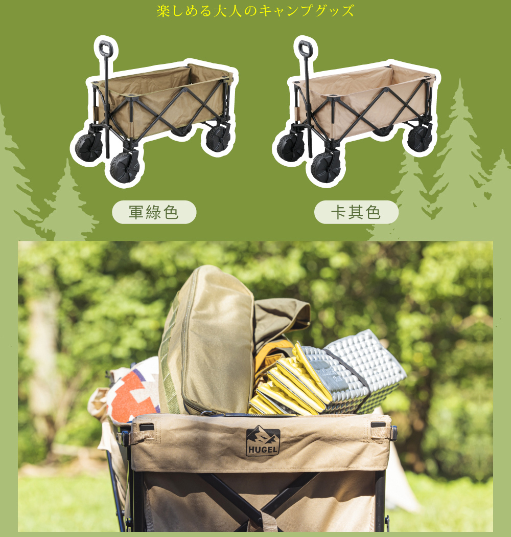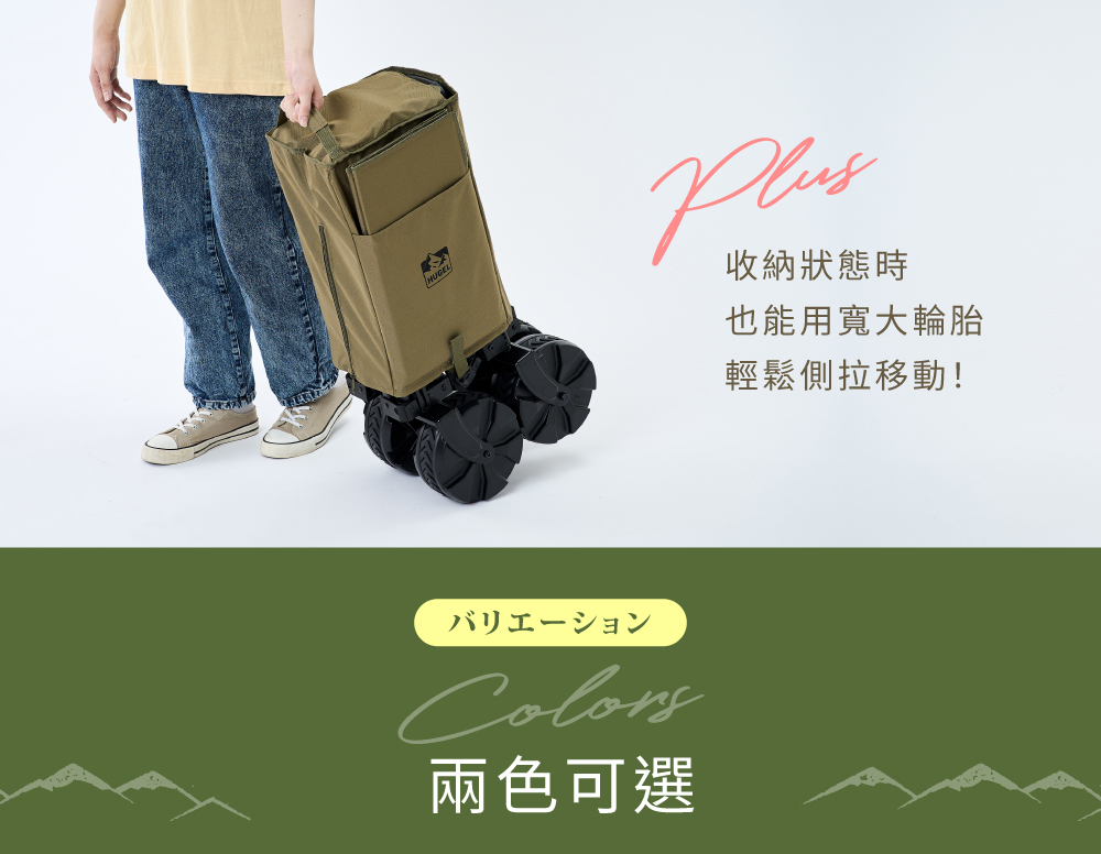 • 採用大輪組設計,凹凸不平的野營地也能安定操控