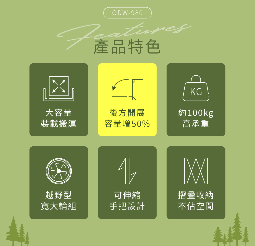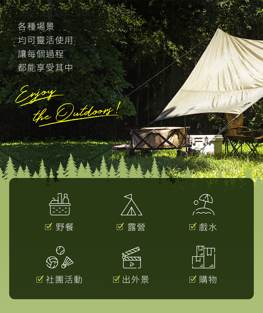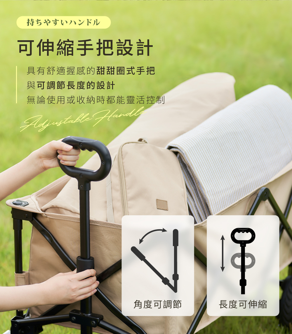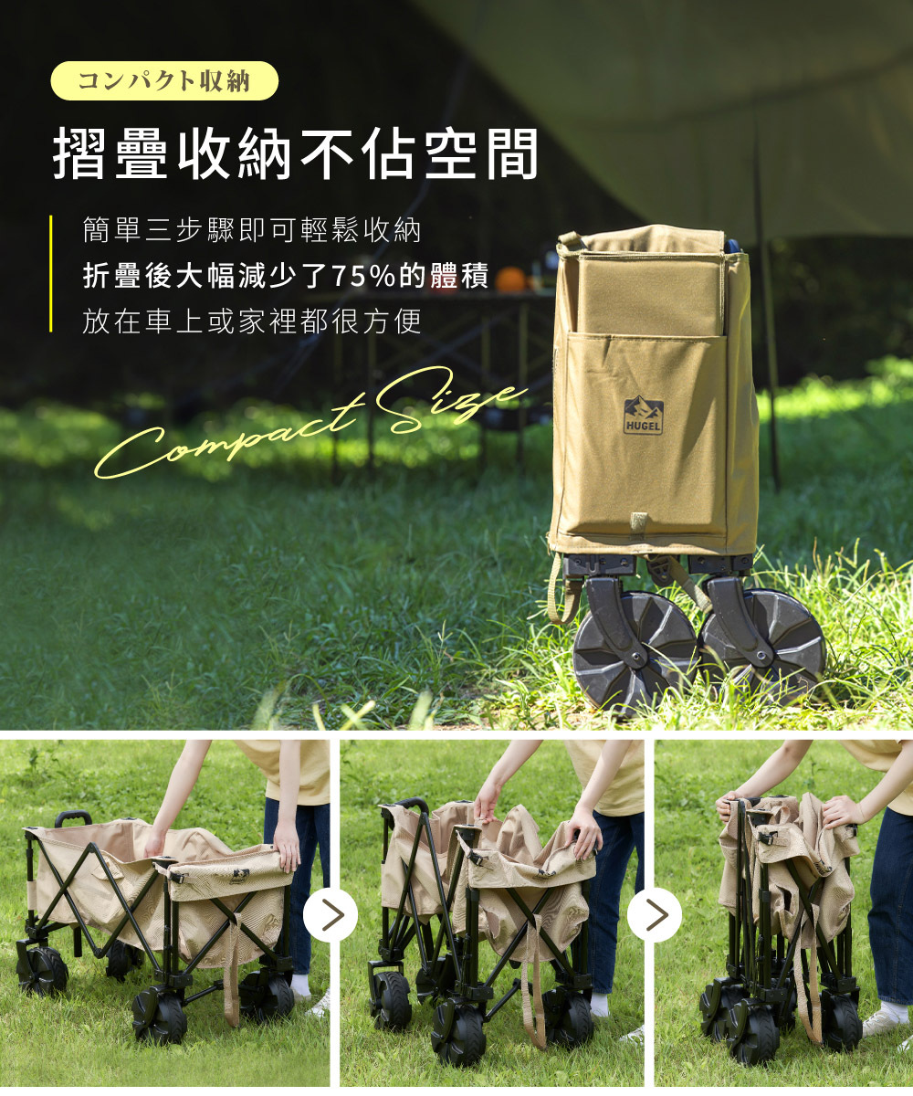 • 採用大輪組設計,凹凸不平的野營地也能安定操控
