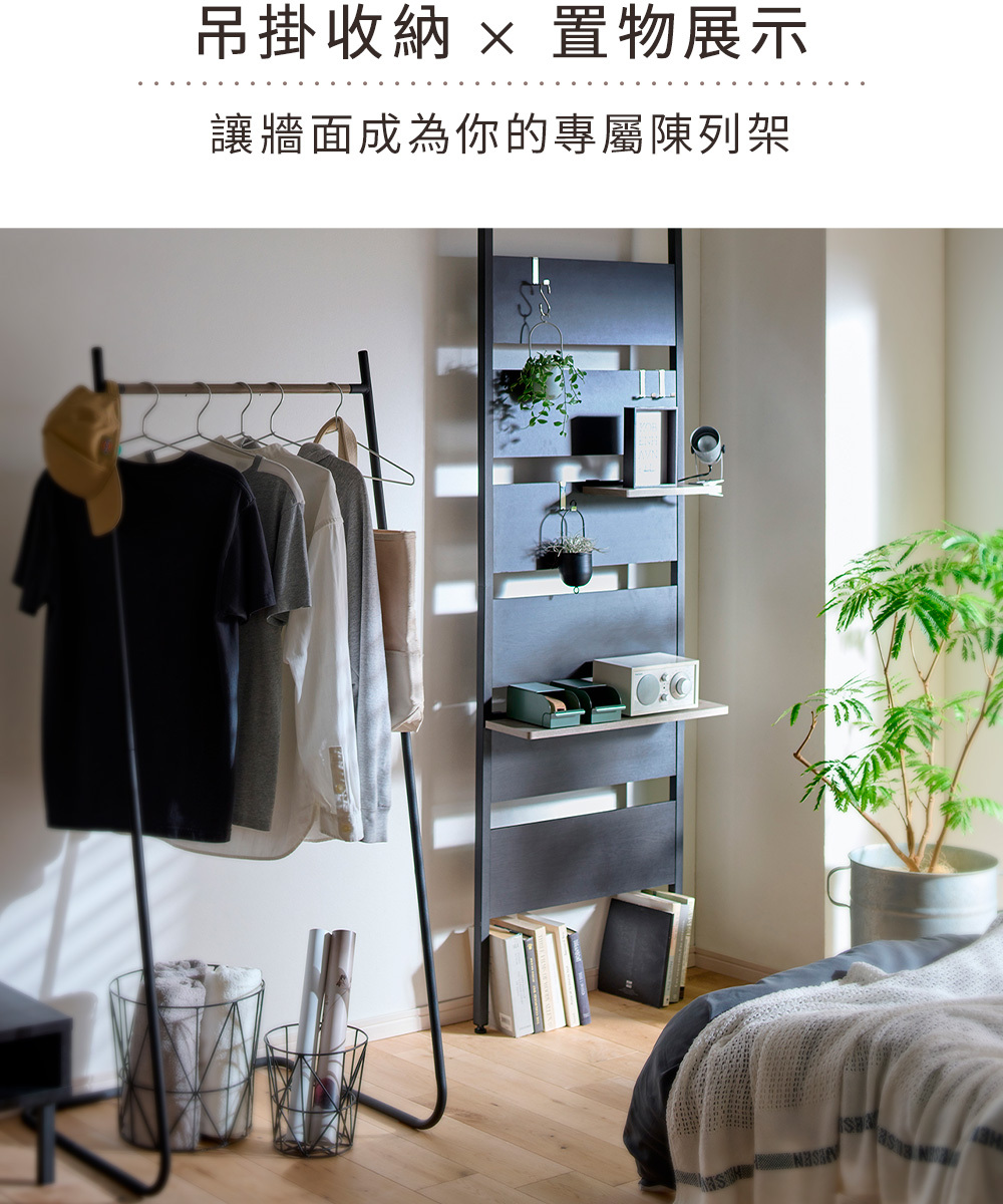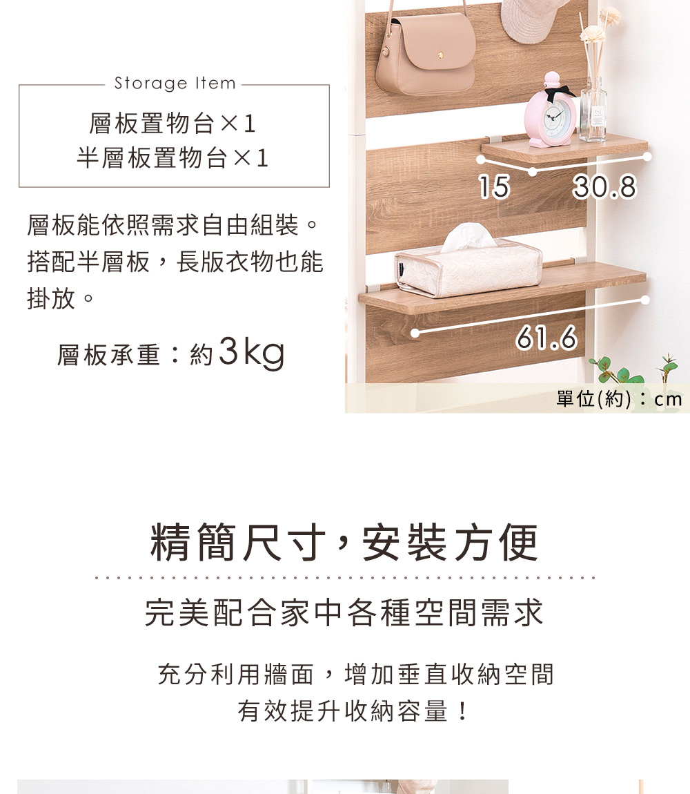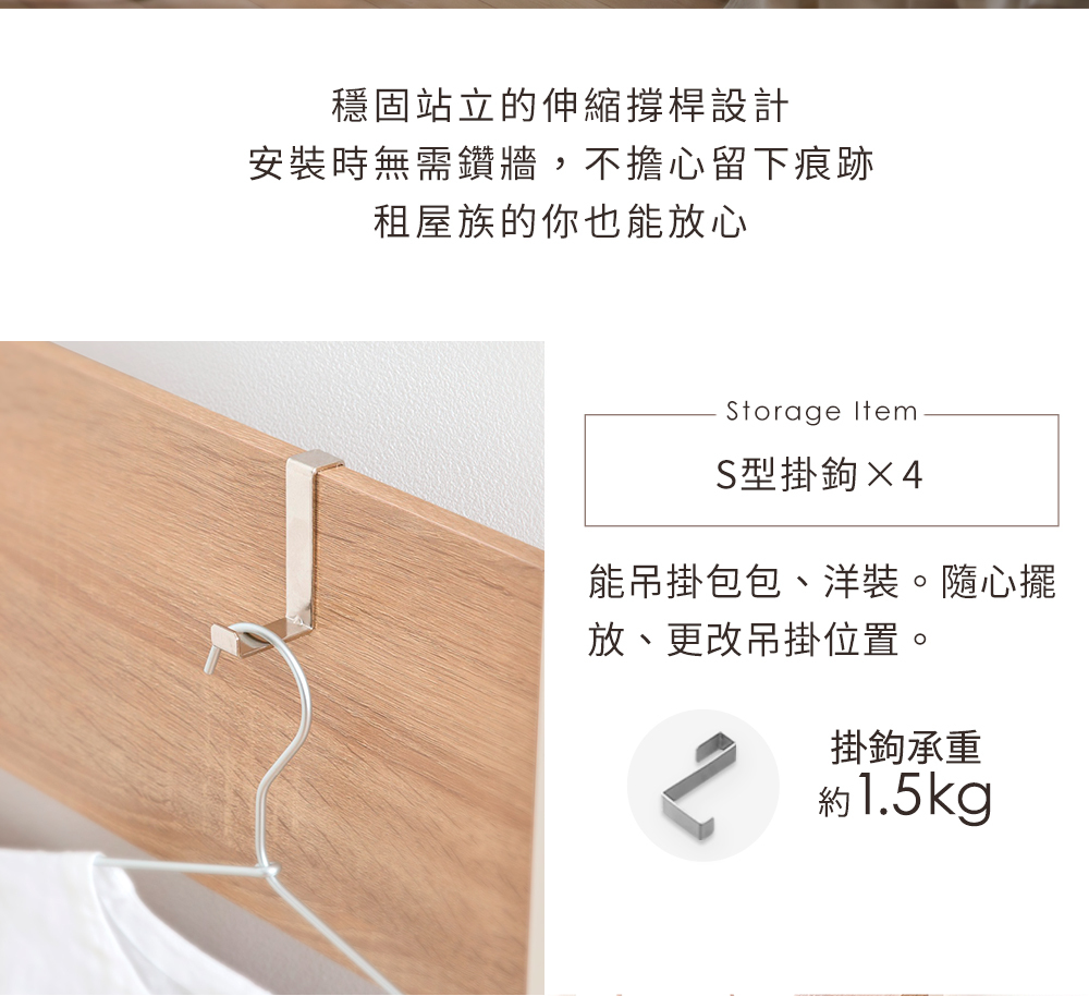 •附贈掛勾及層板,可依使用需求自由搭配收納方式