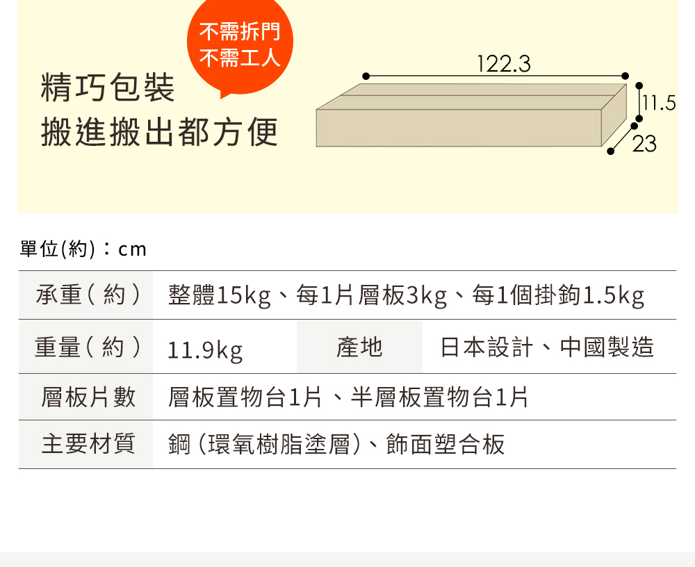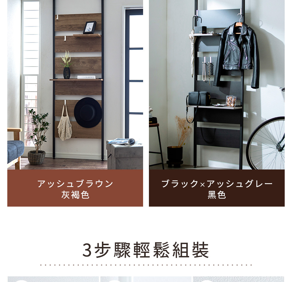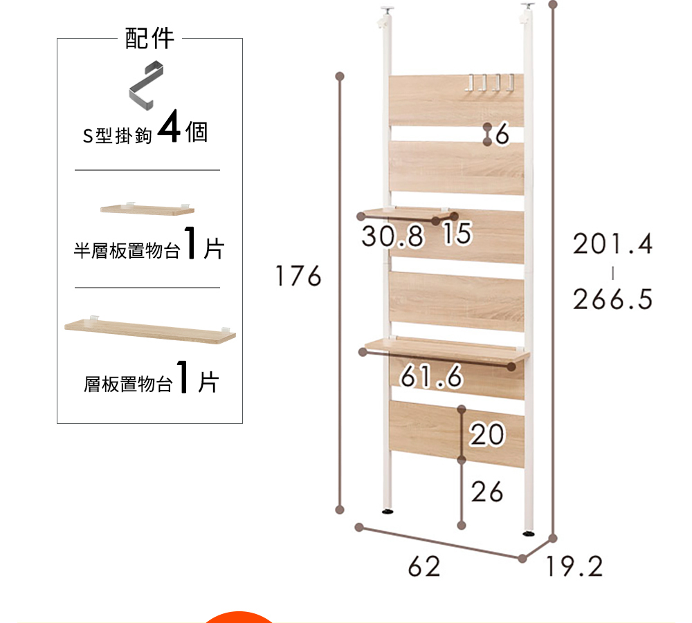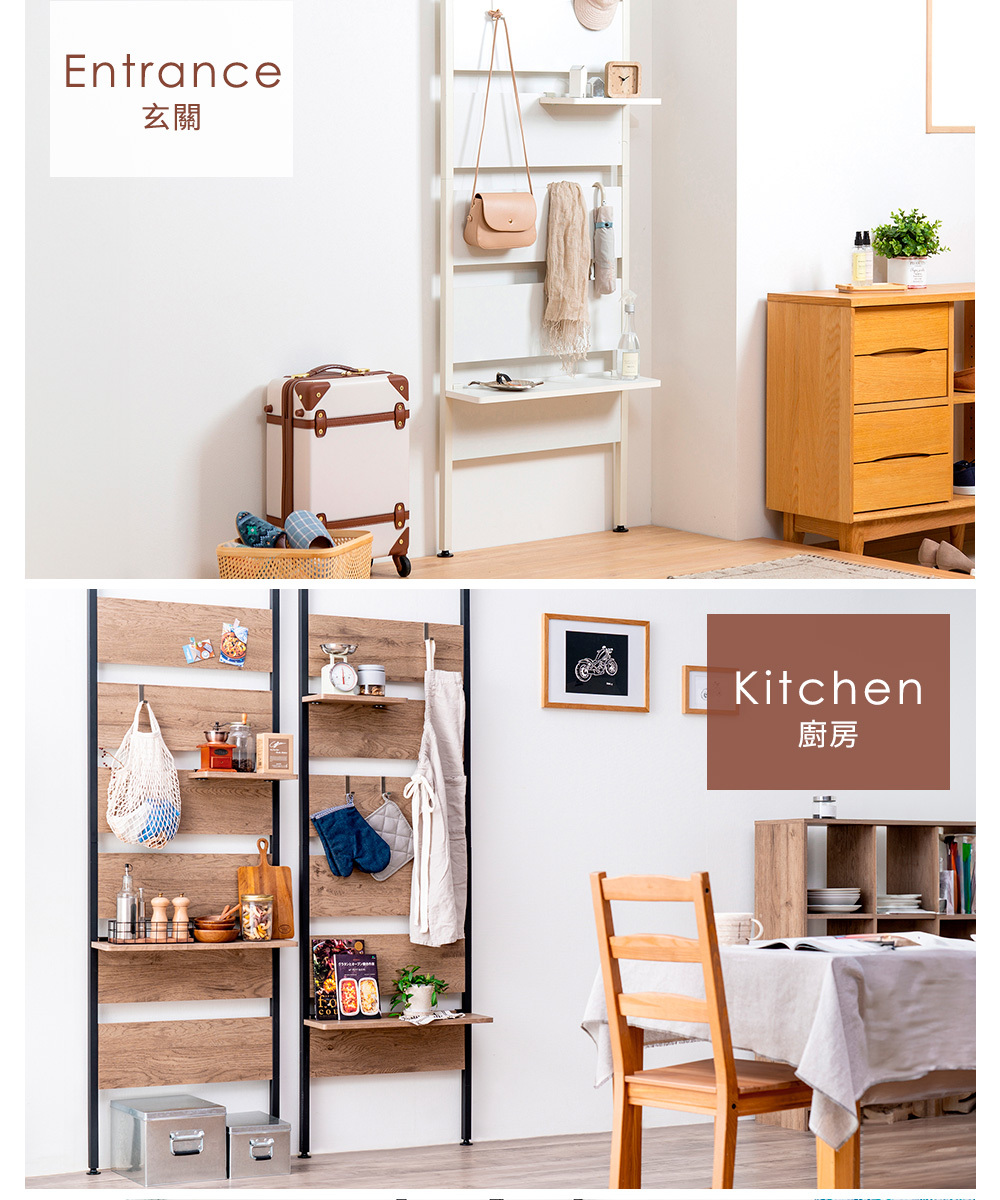 •附贈掛勾及層板,可依使用需求自由搭配收納方式